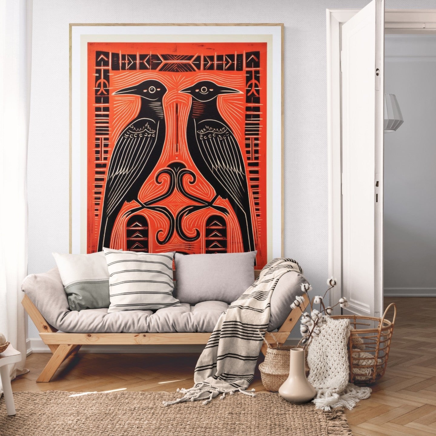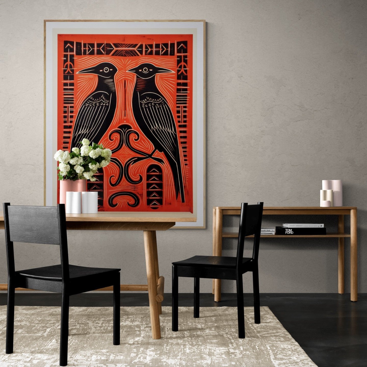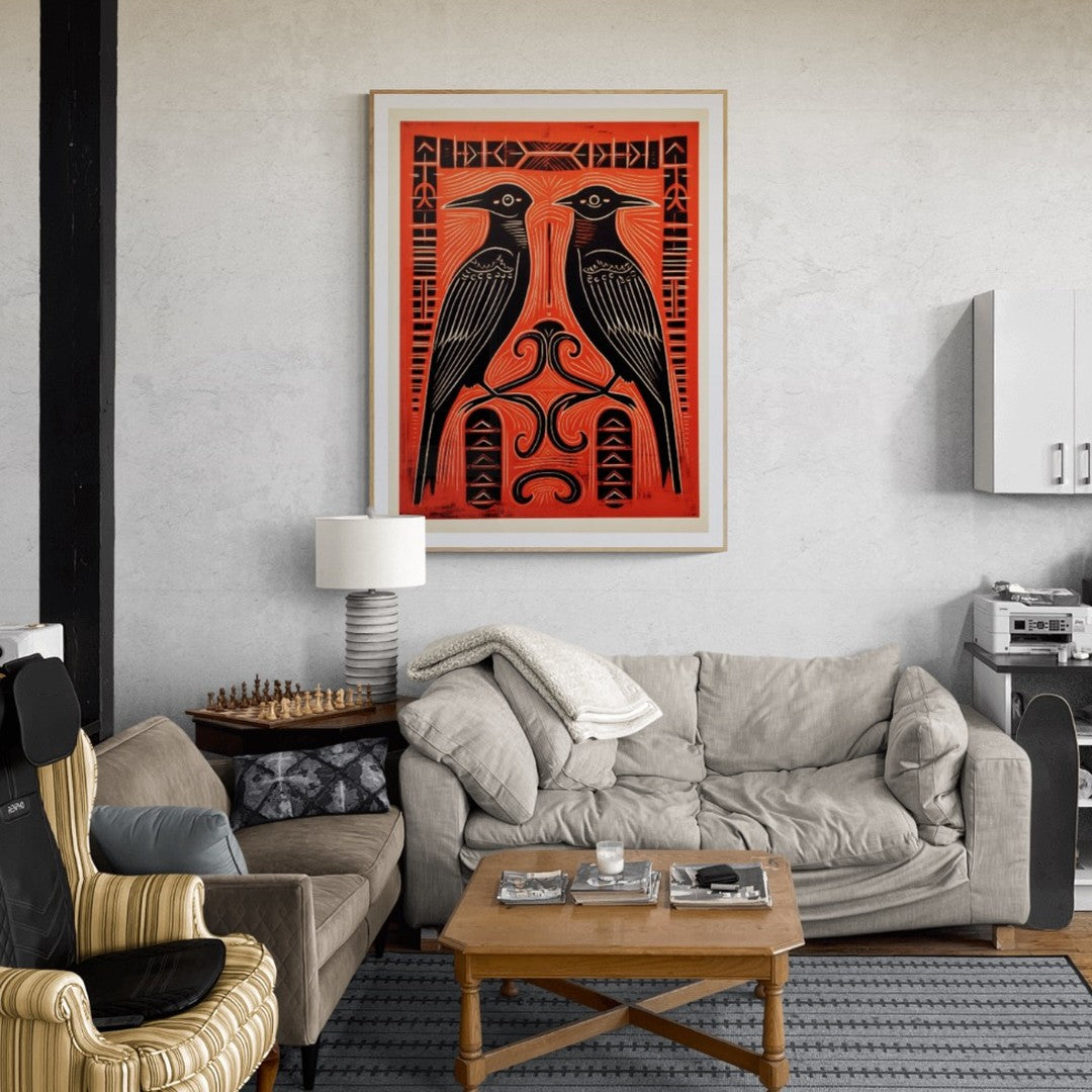 For framed artworks, we recommend carefully removing the protective packaging and hanging it with the help of two people using strong nails. For larger artworks, if possible, use screws and wall anchors.