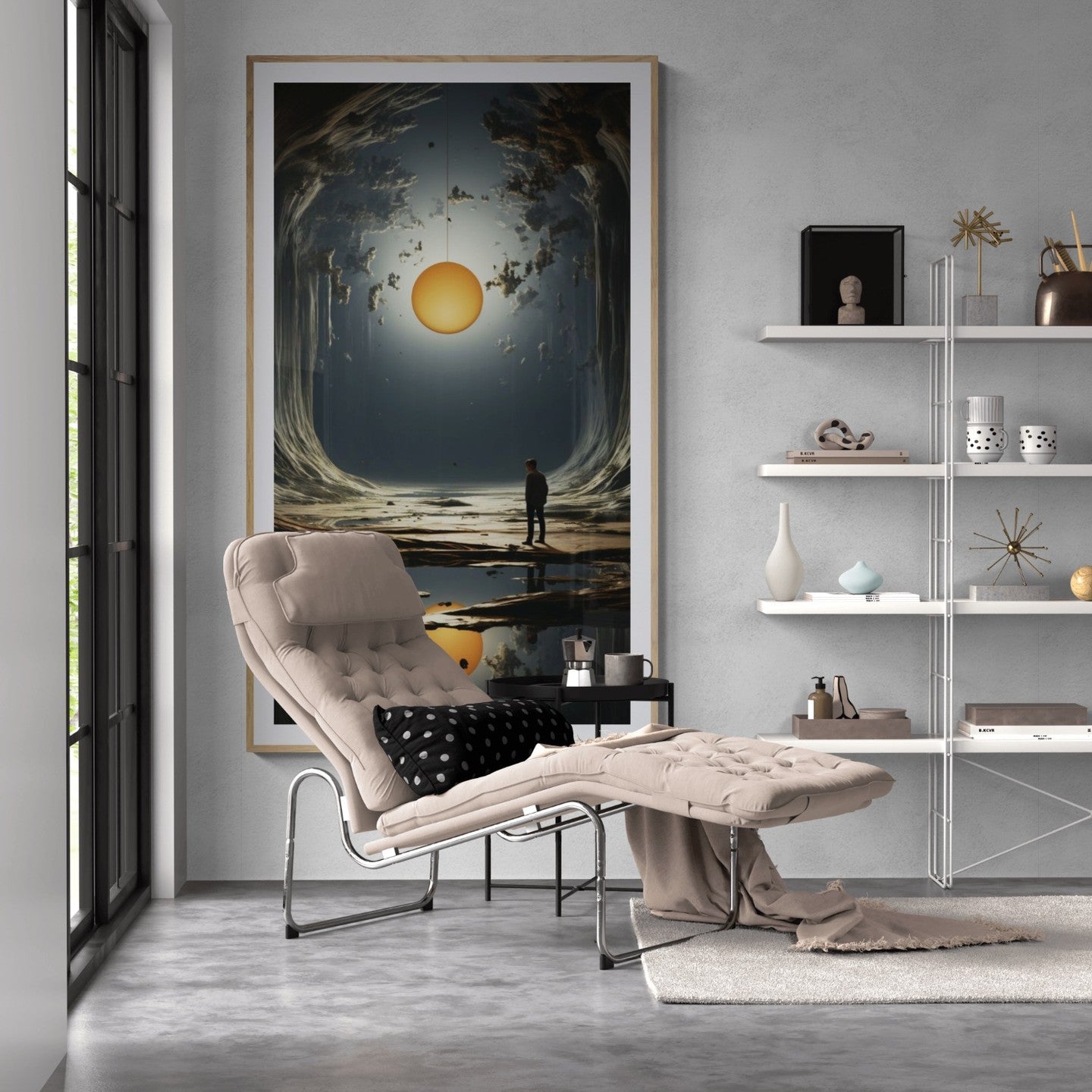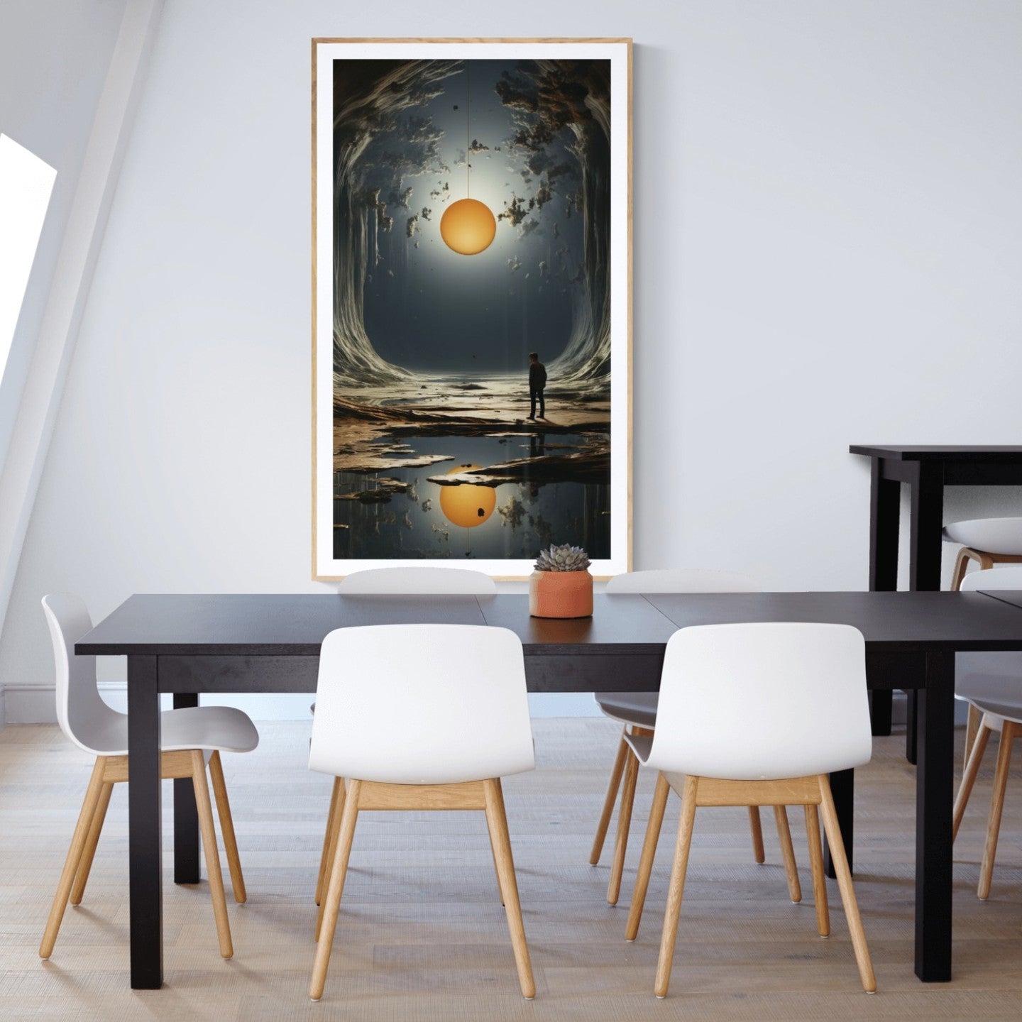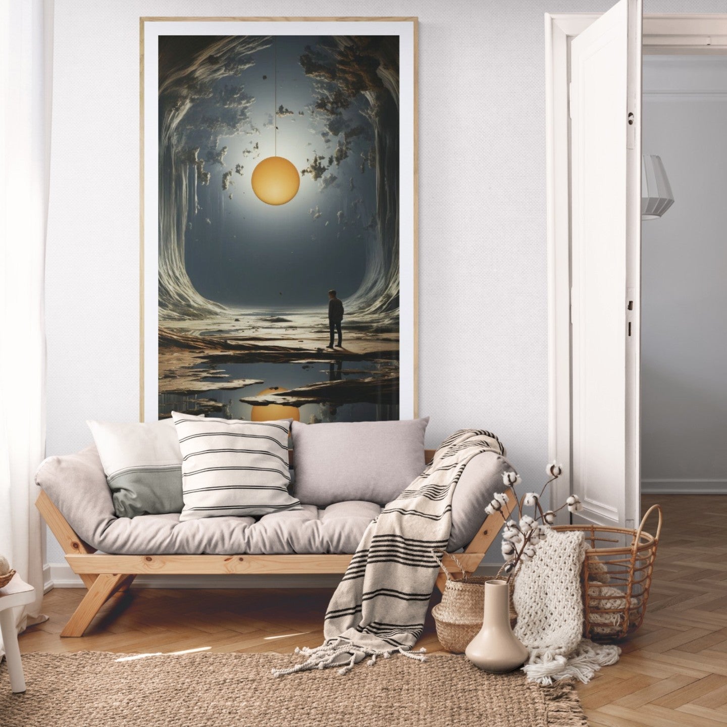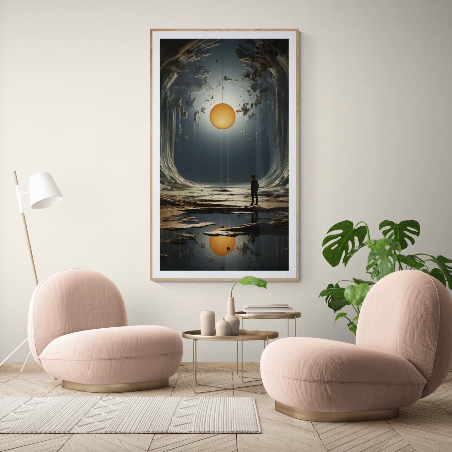 Surrealist painting of the sun inspired in Olafur Eliasson installation at the Tate Modern.
