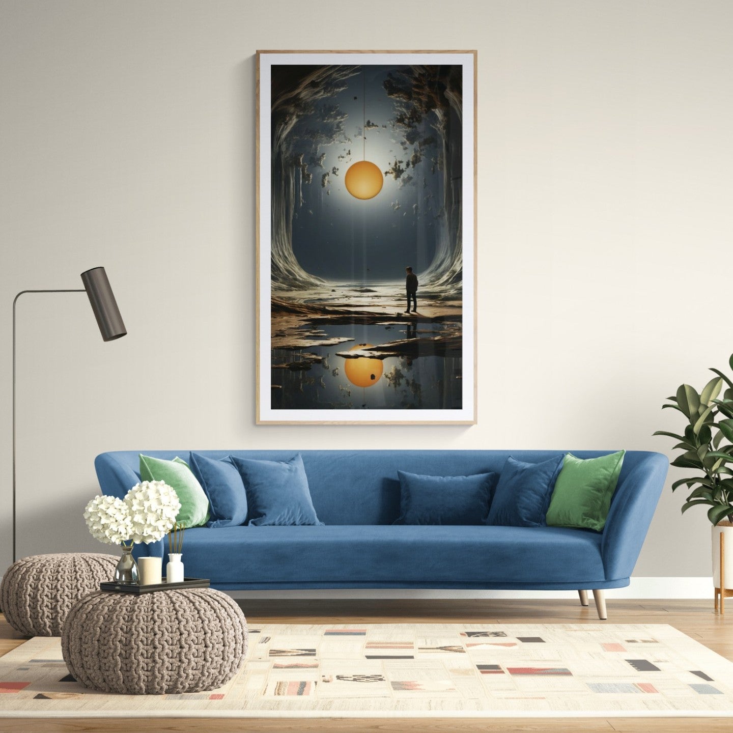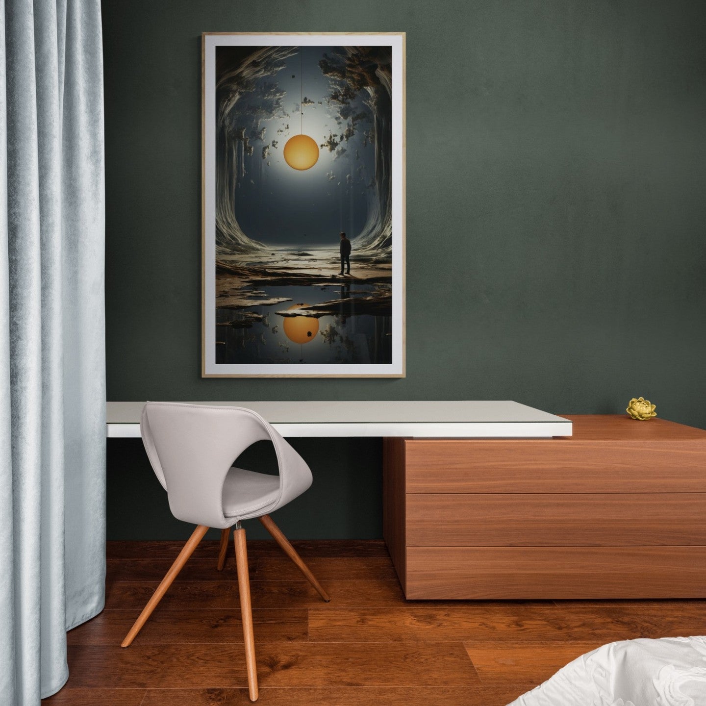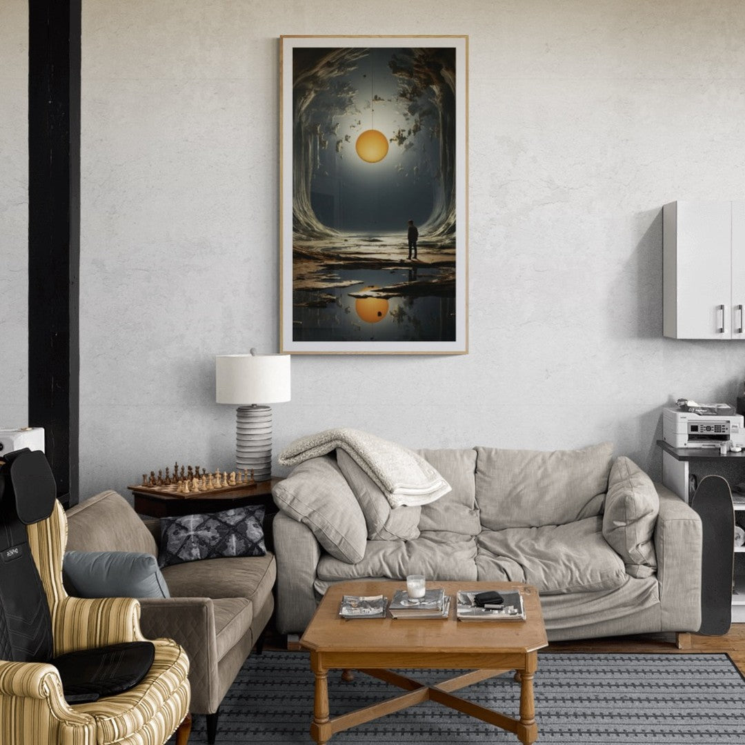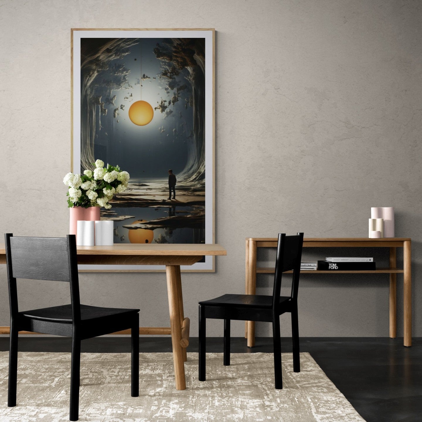 Surrealist painting of the sun inspired in Olafur Eliasson installation at the Tate Modern.
