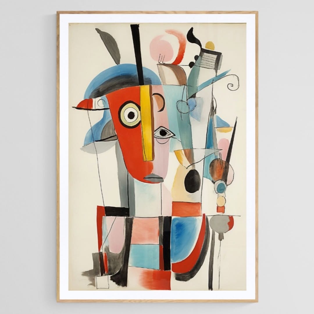 Simple, abstract cubist person in water color technic.