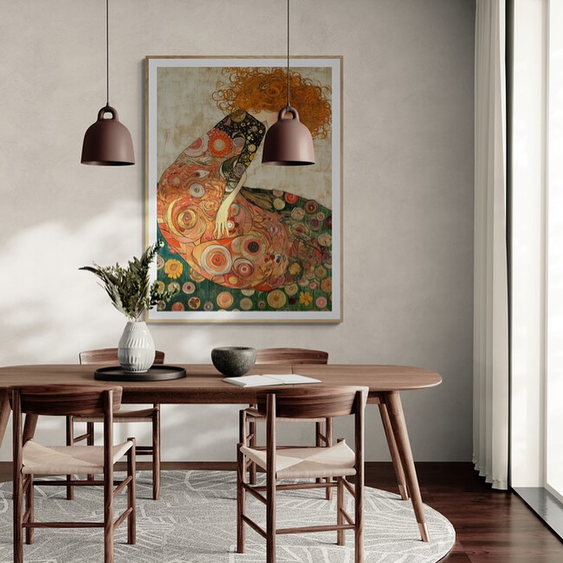 For framed artworks, we recommend carefully removing the protective packaging and hanging it with the help of two people using strong nails. For larger artworks, if possible, use screws and wall anchors.