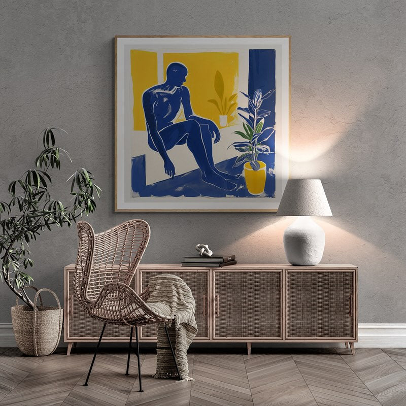 For framed artworks, we recommend carefully removing the protective packaging and hanging it with the help of two people using strong nails. For larger artworks, if possible, use screws and wall anchors.