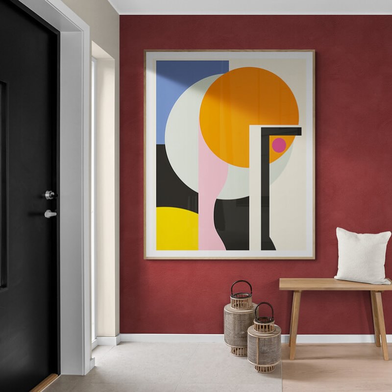 For framed artworks, we recommend carefully removing the protective packaging and hanging it with the help of two people using strong nails. For larger artworks, if possible, use screws and wall anchors.