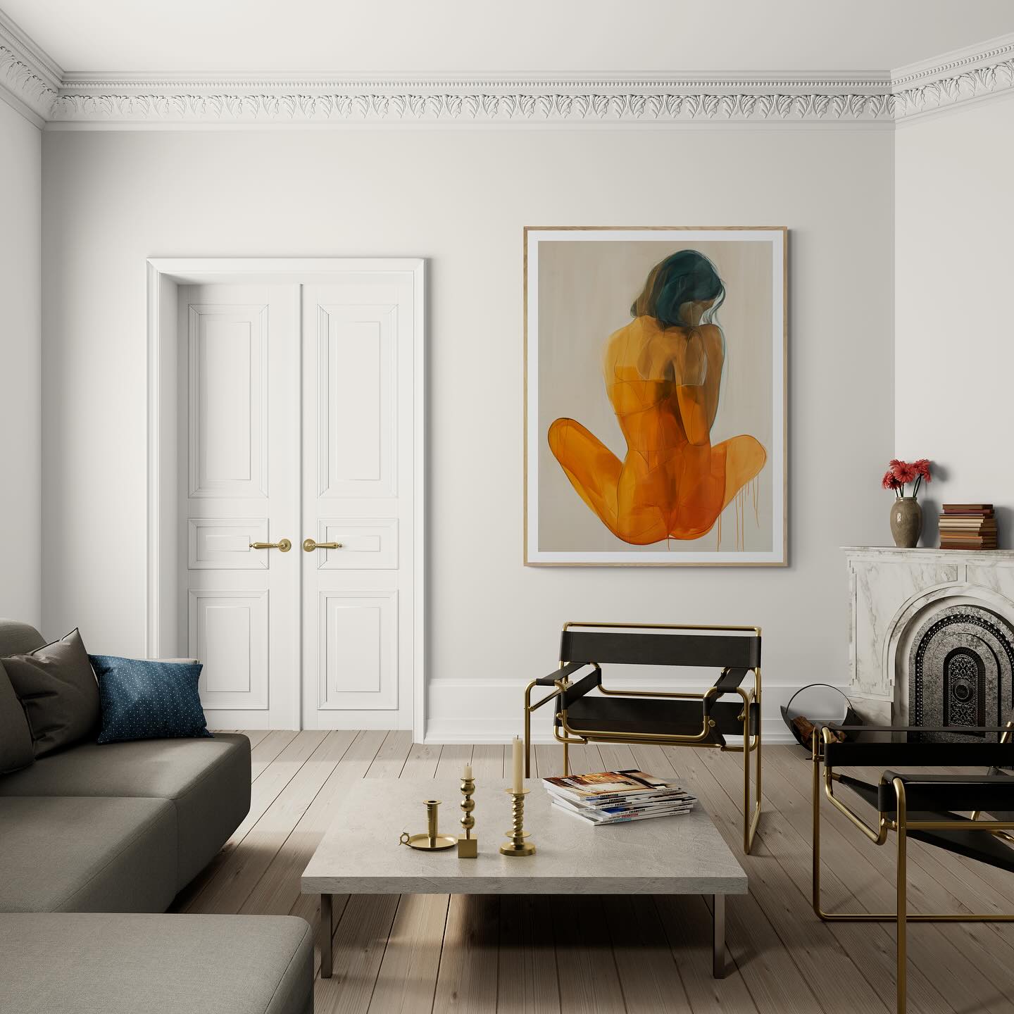 For framed artworks, we recommend carefully removing the protective packaging and hanging it with the help of two people using strong nails. For larger artworks, if possible, use screws and wall anchors.
