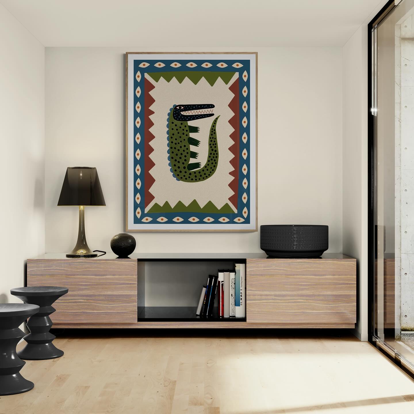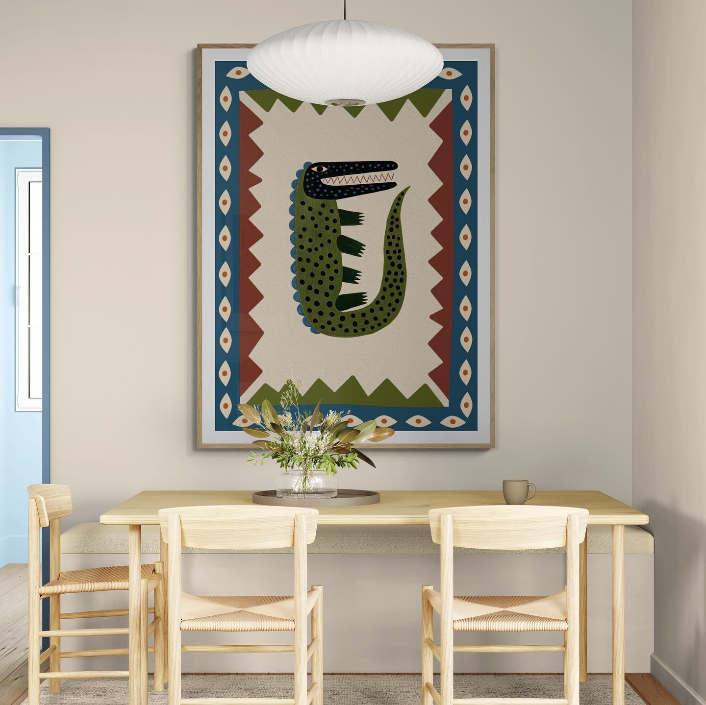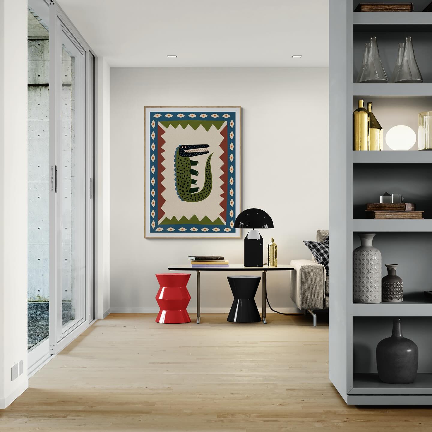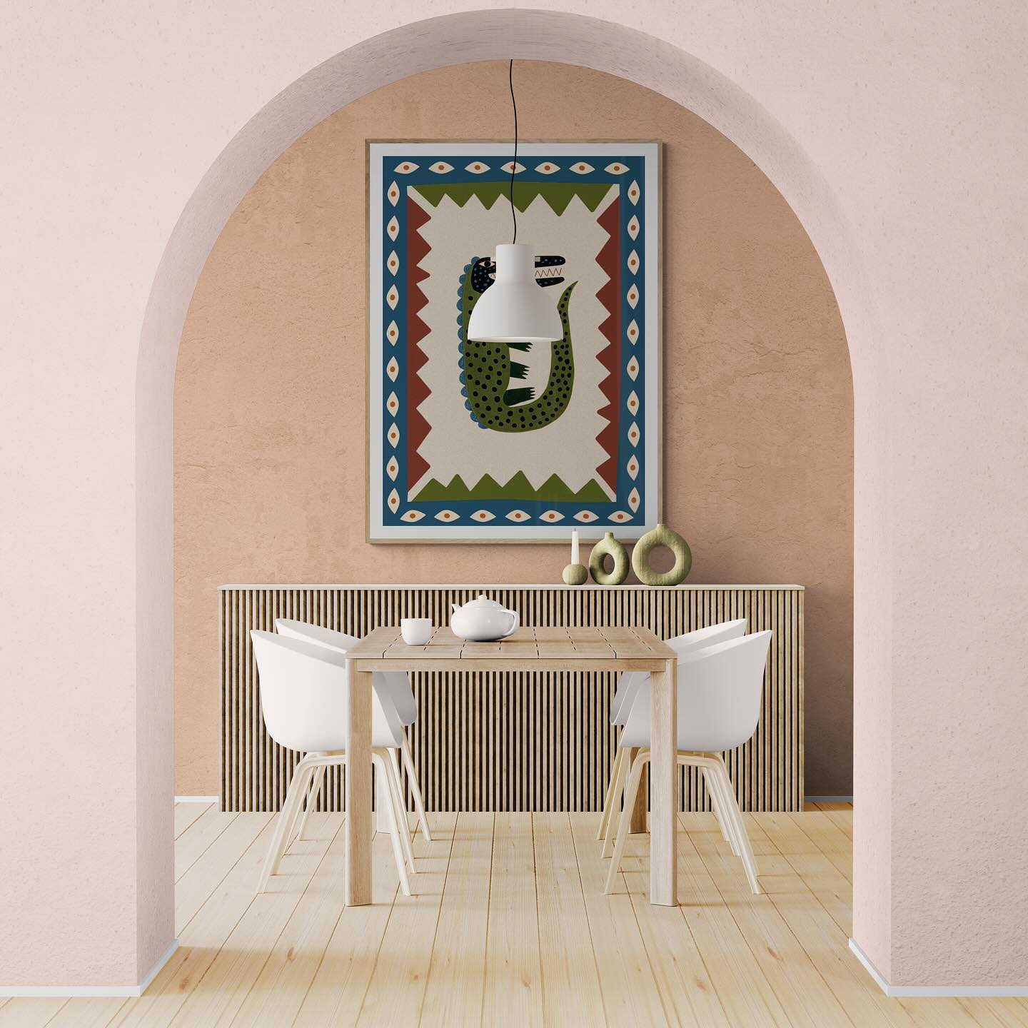 For framed artworks, we recommend carefully removing the protective packaging and hanging it with the help of two people using strong nails. For larger artworks, if possible, use screws and wall anchors.