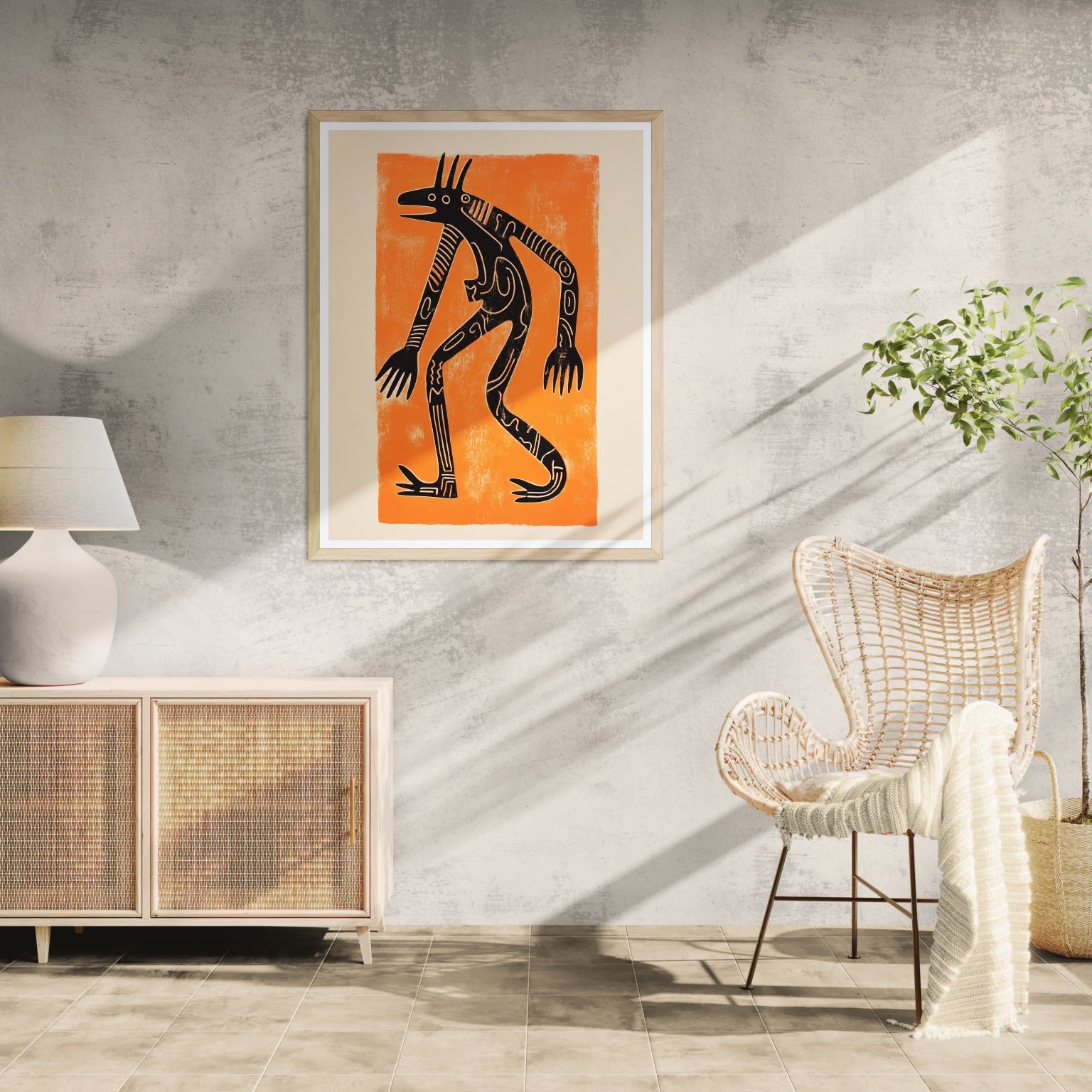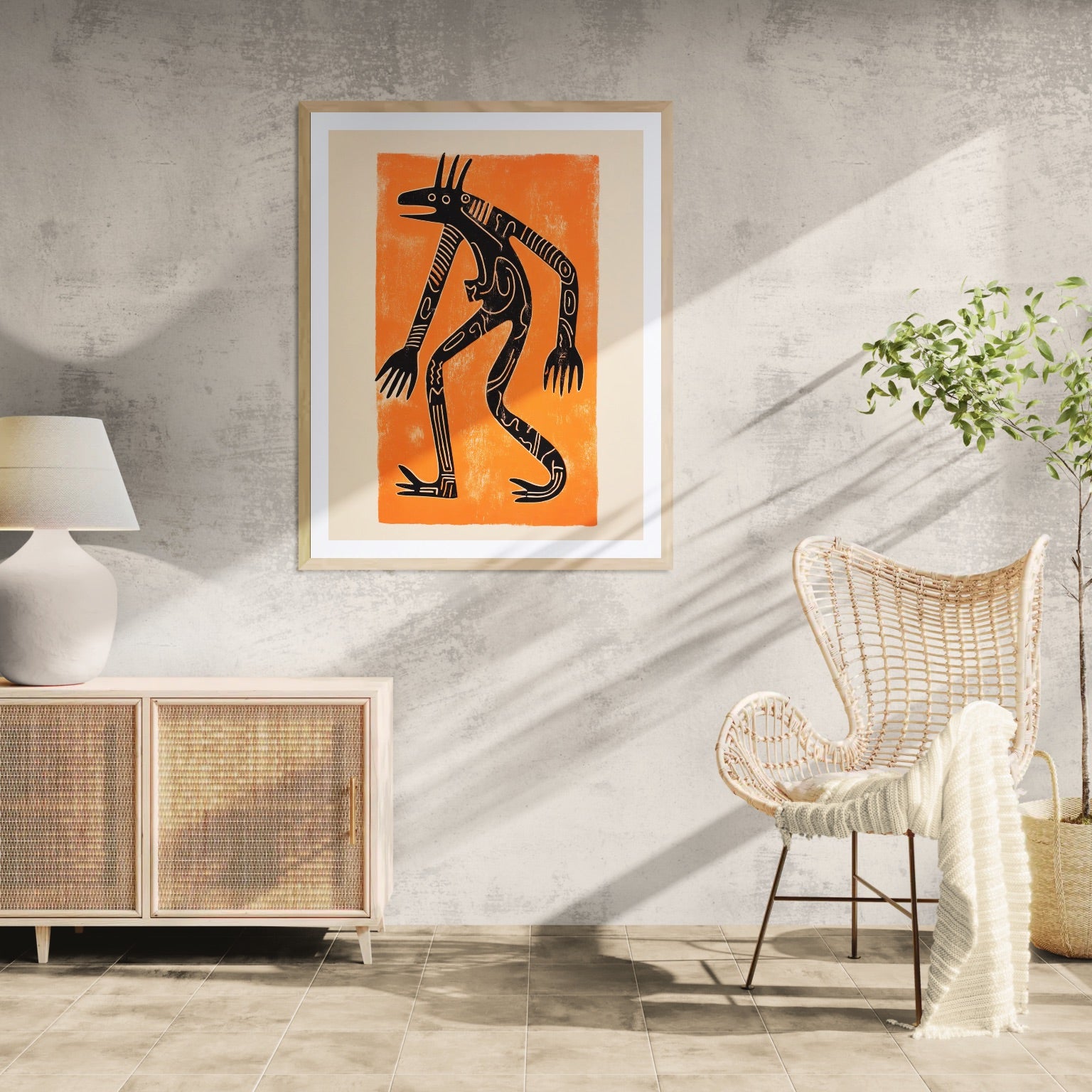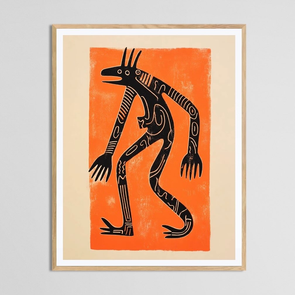 An abstract Minoan figure with long limbs.