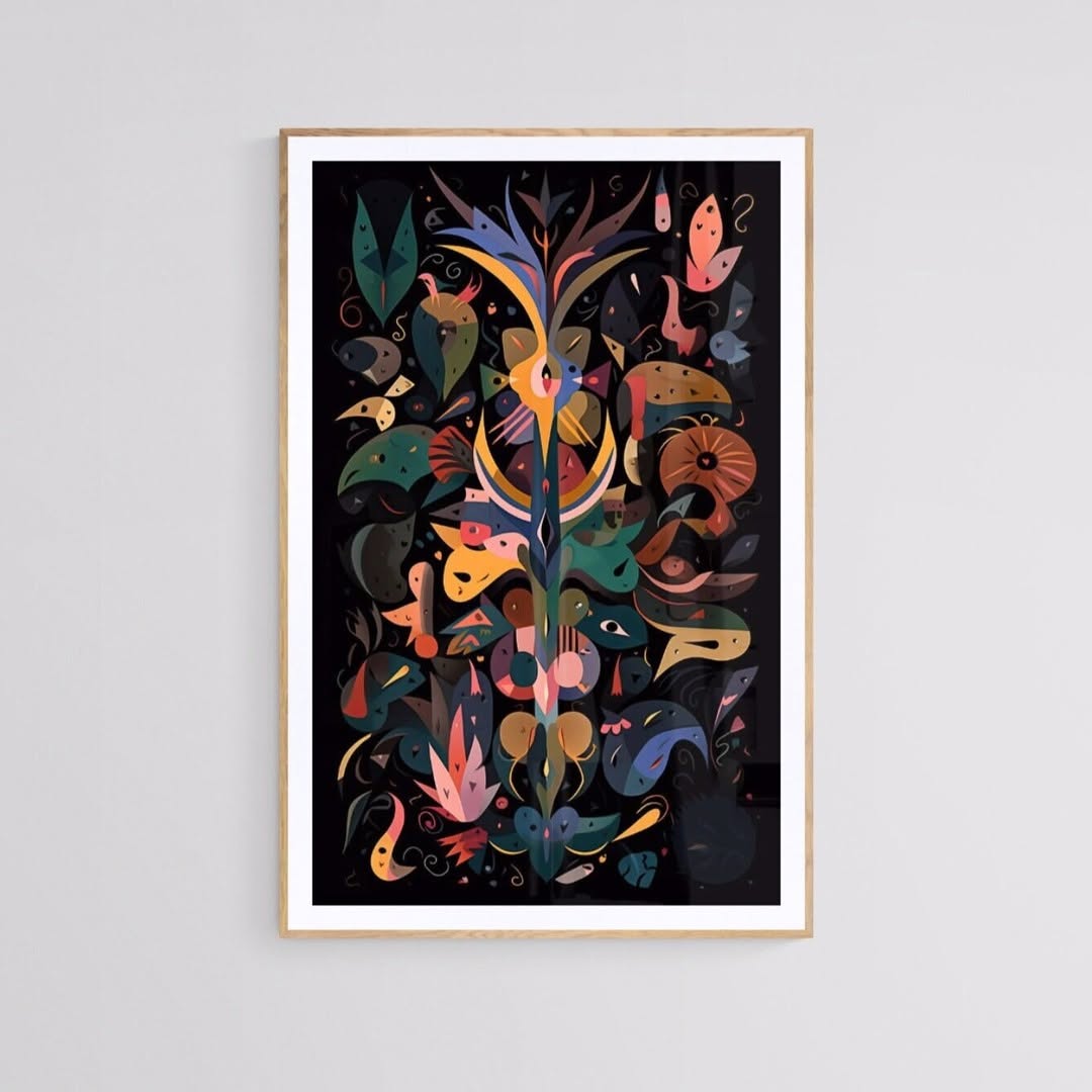 Arbol de la Vida - Abstract tree of life abstract plants cactus wall art print Dark boho contemporary.