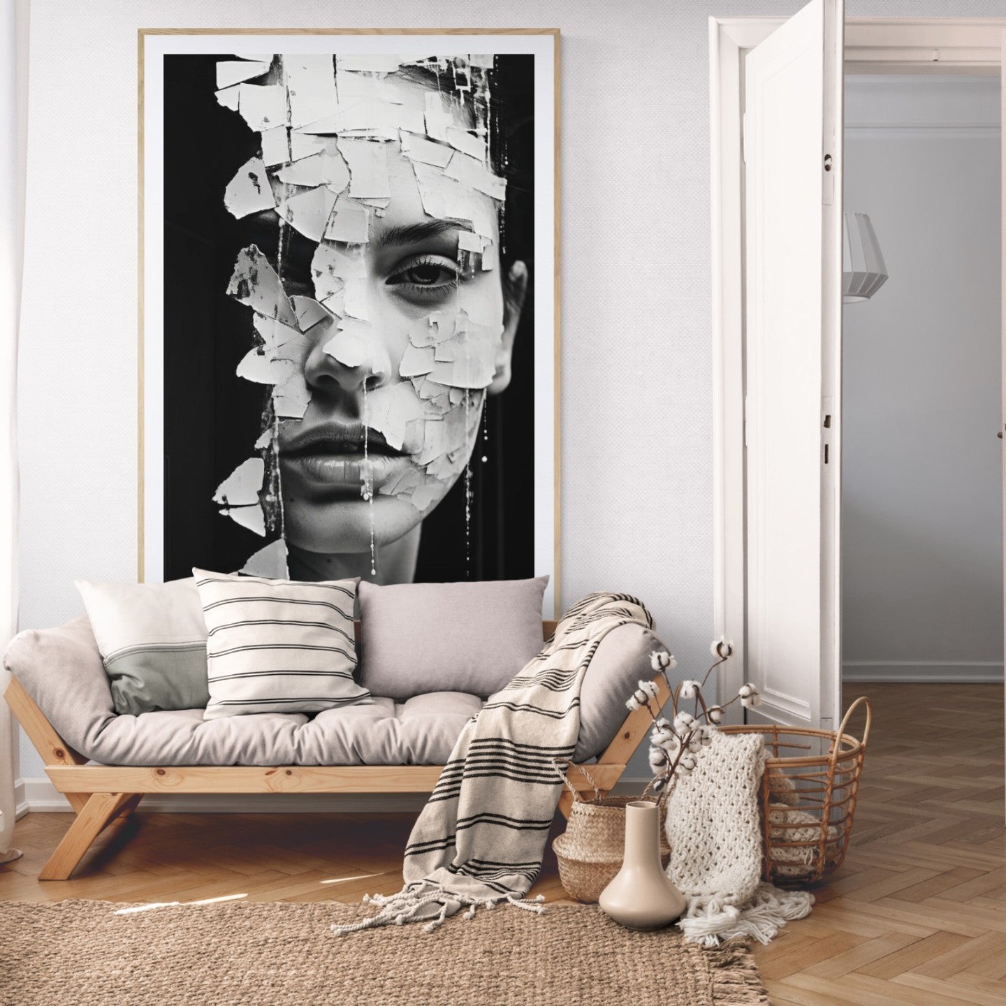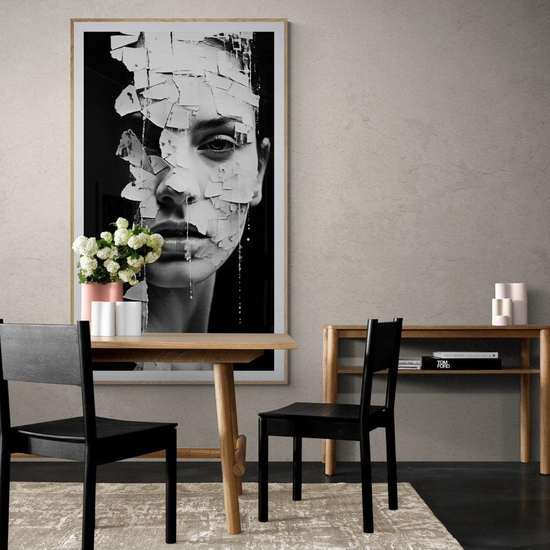 Para obras enmarcadas, sugerimos quitar con cuidado el embalaje protector y colgarla con la ayuda de dos personas, usando clavos resistentes. En el caso de obras de gran tamaño, si es posible, utiliza tornillos y tacos de pared.