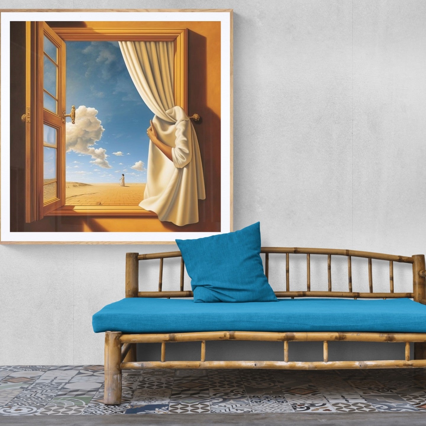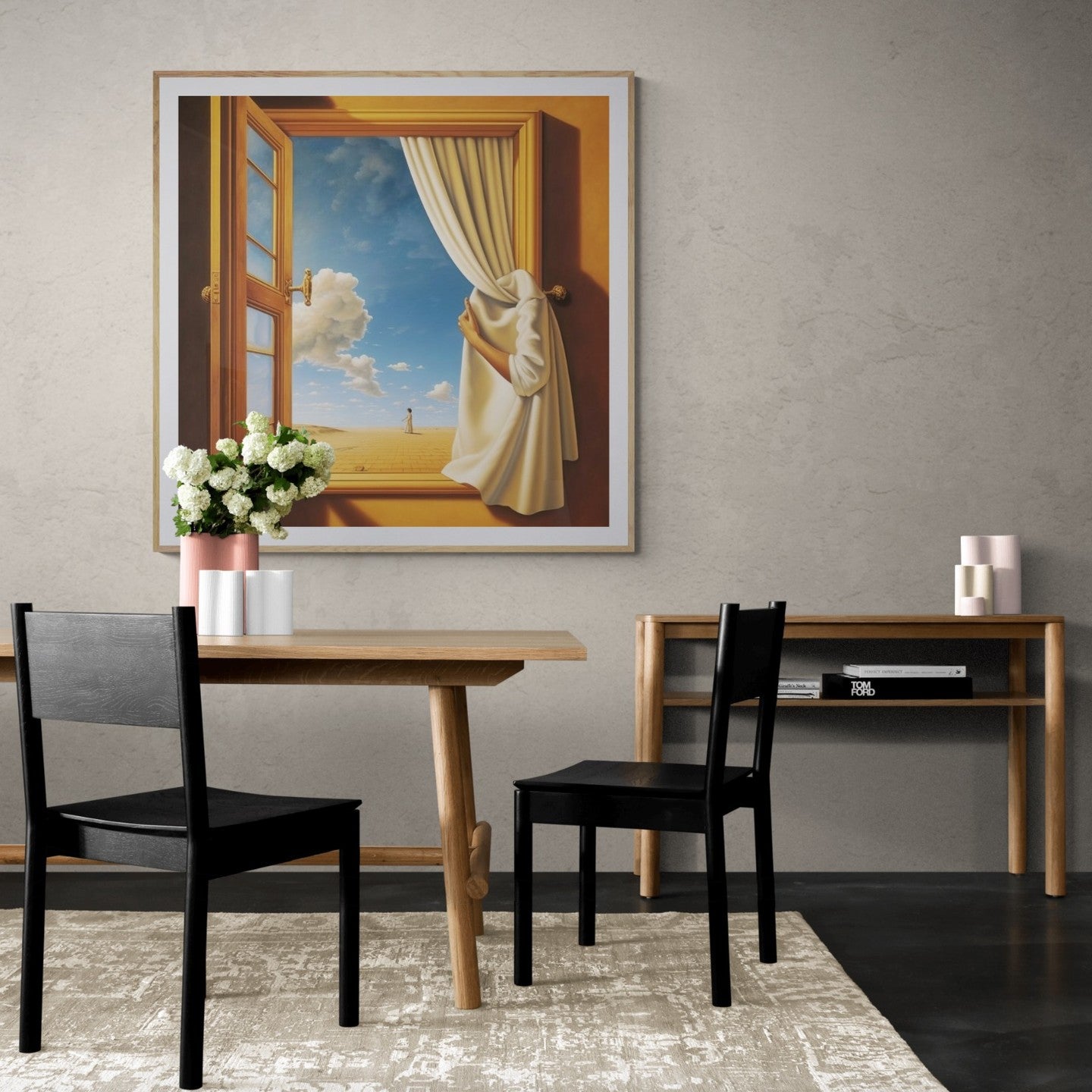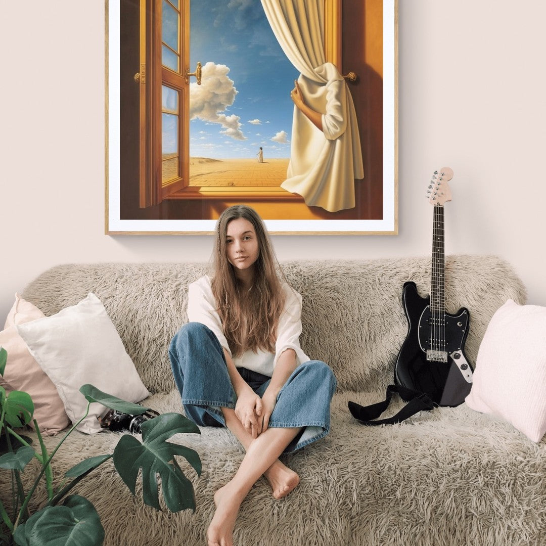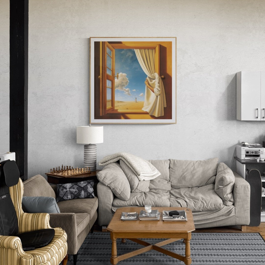 Para obras enmarcadas, sugerimos quitar con cuidado el embalaje protector y colgarla con la ayuda de dos personas, usando clavos resistentes. En el caso de obras de gran tamaño, si es posible, utiliza tornillos y tacos de pared.