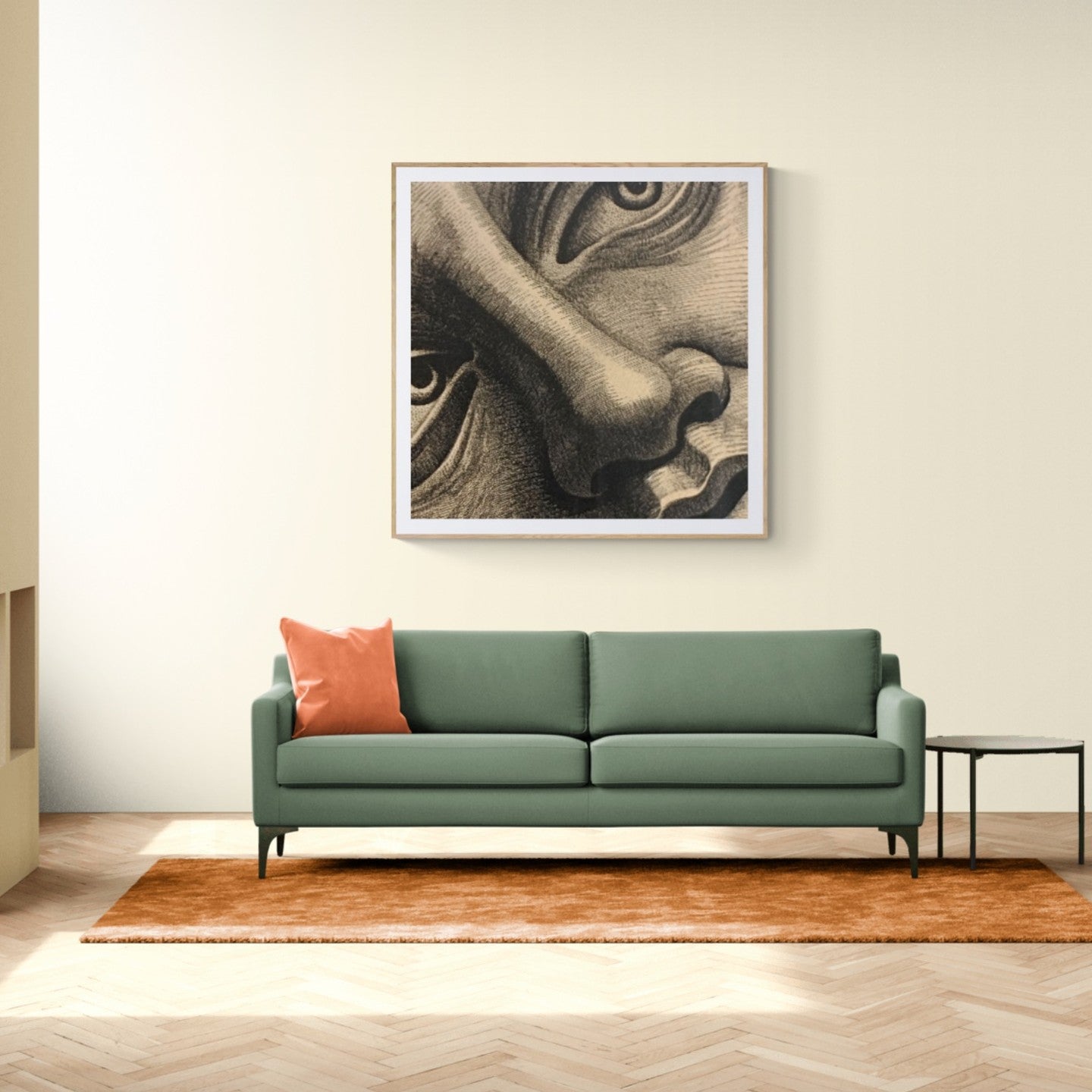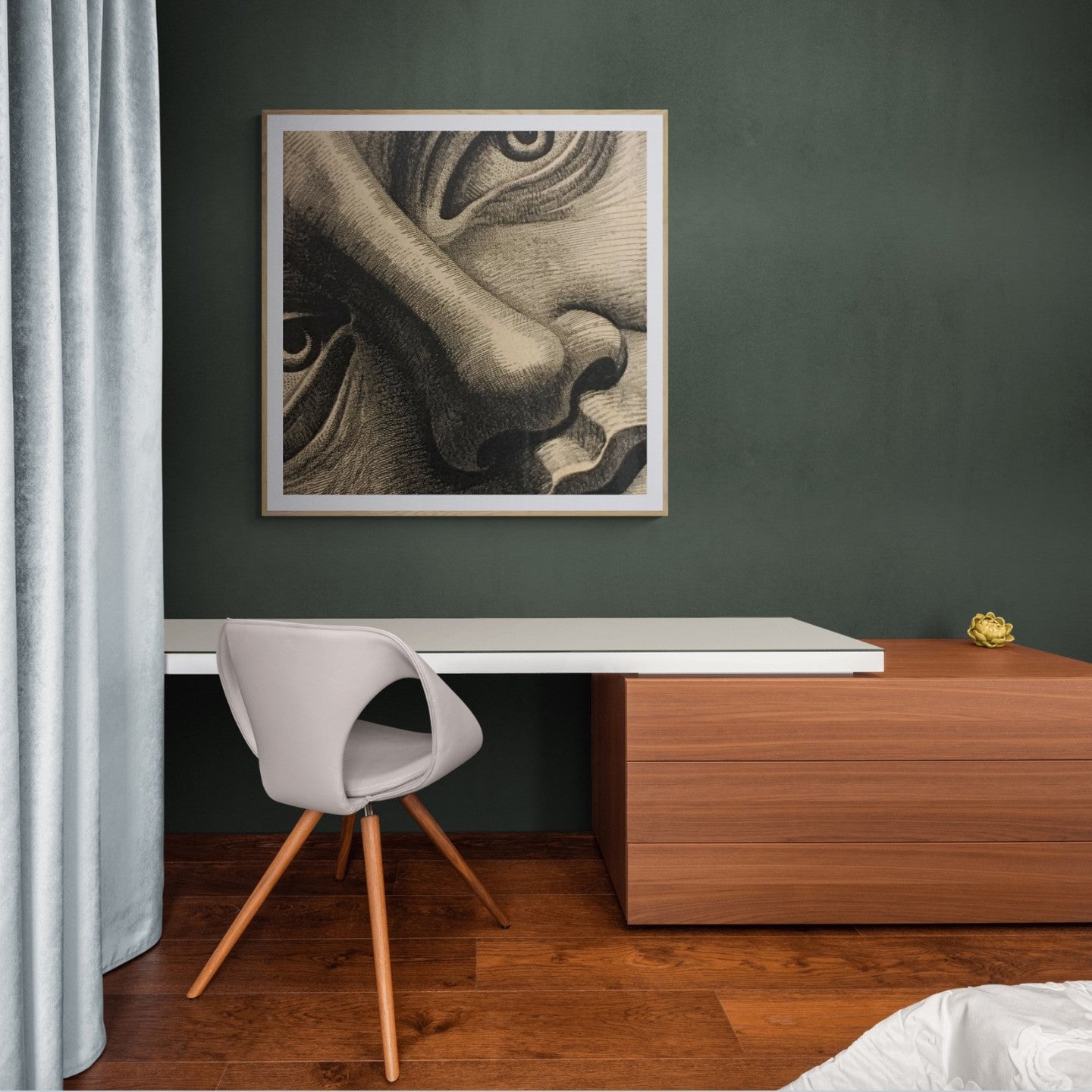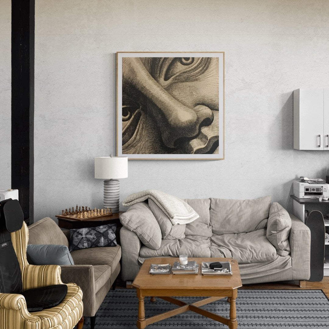 Para obras enmarcadas, sugerimos quitar con cuidado el embalaje protector y colgarla con la ayuda de dos personas, usando clavos resistentes. En el caso de obras de gran tamaño, si es posible, utiliza tornillos y tacos de pared.