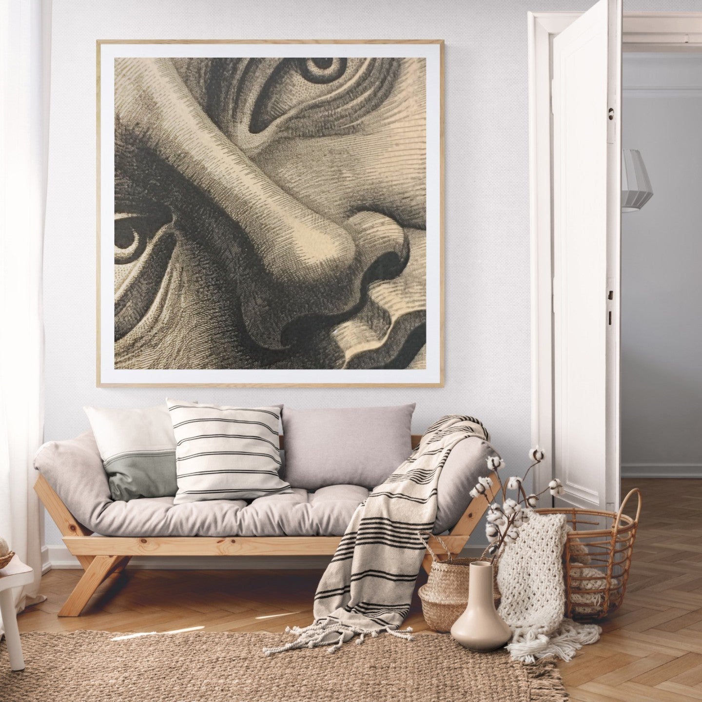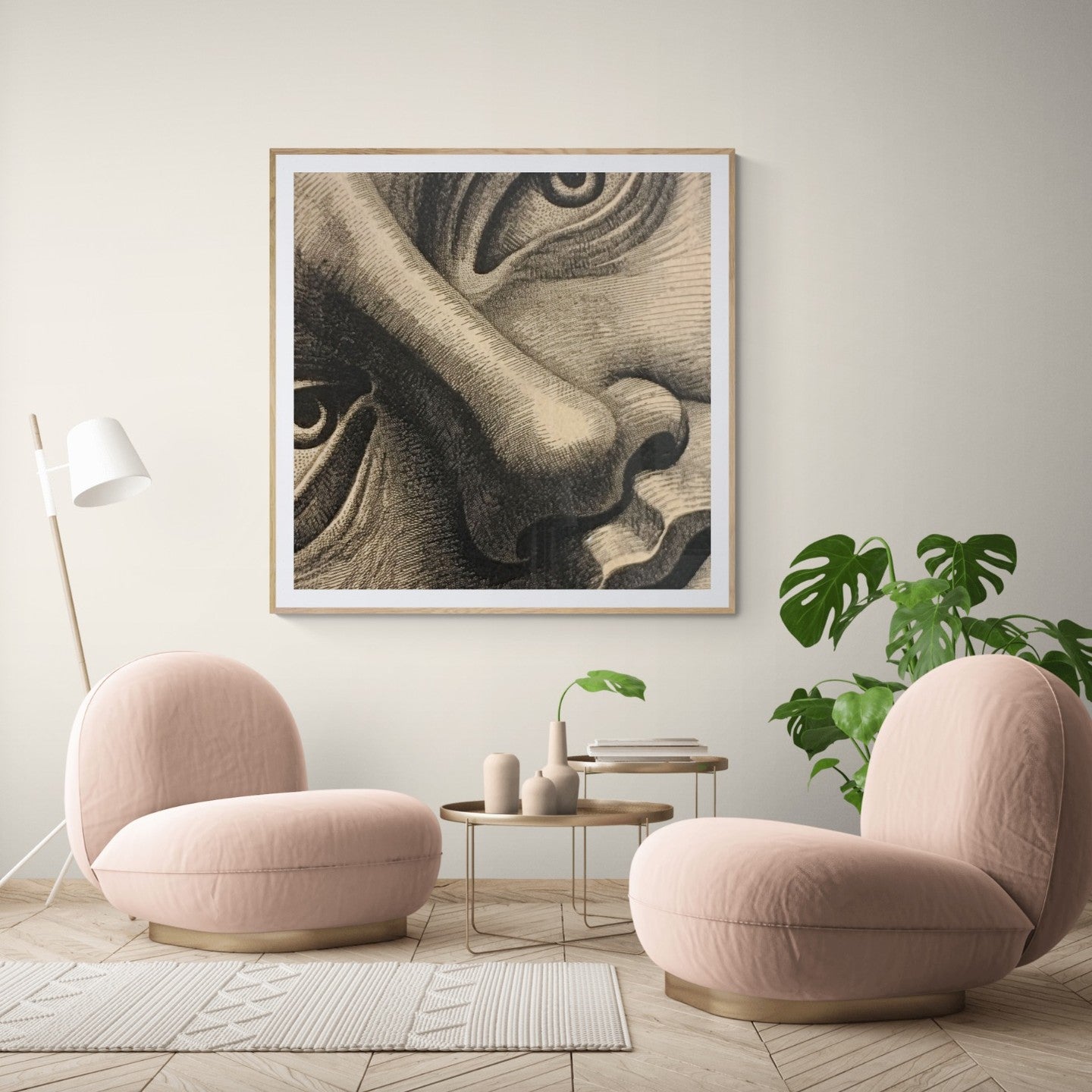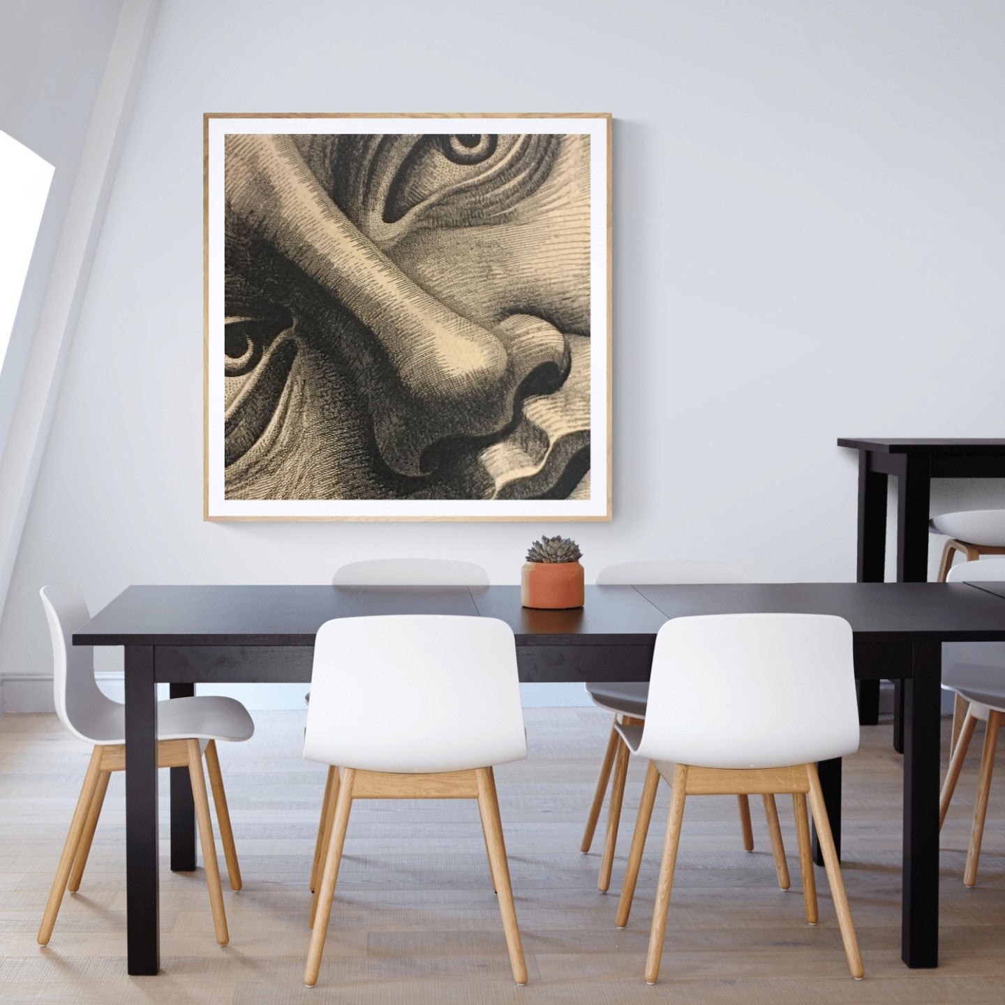 Para obras enmarcadas, sugerimos quitar con cuidado el embalaje protector y colgarla con la ayuda de dos personas, usando clavos resistentes. En el caso de obras de gran tamaño, si es posible, utiliza tornillos y tacos de pared.