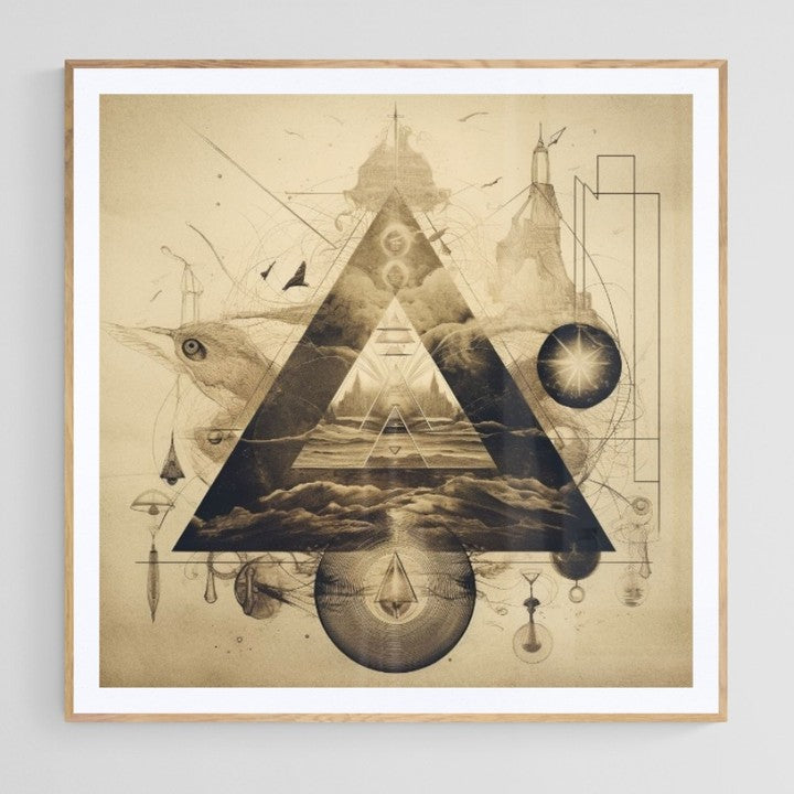 Minimalist futuristic vector graphics on vintage looking paper.