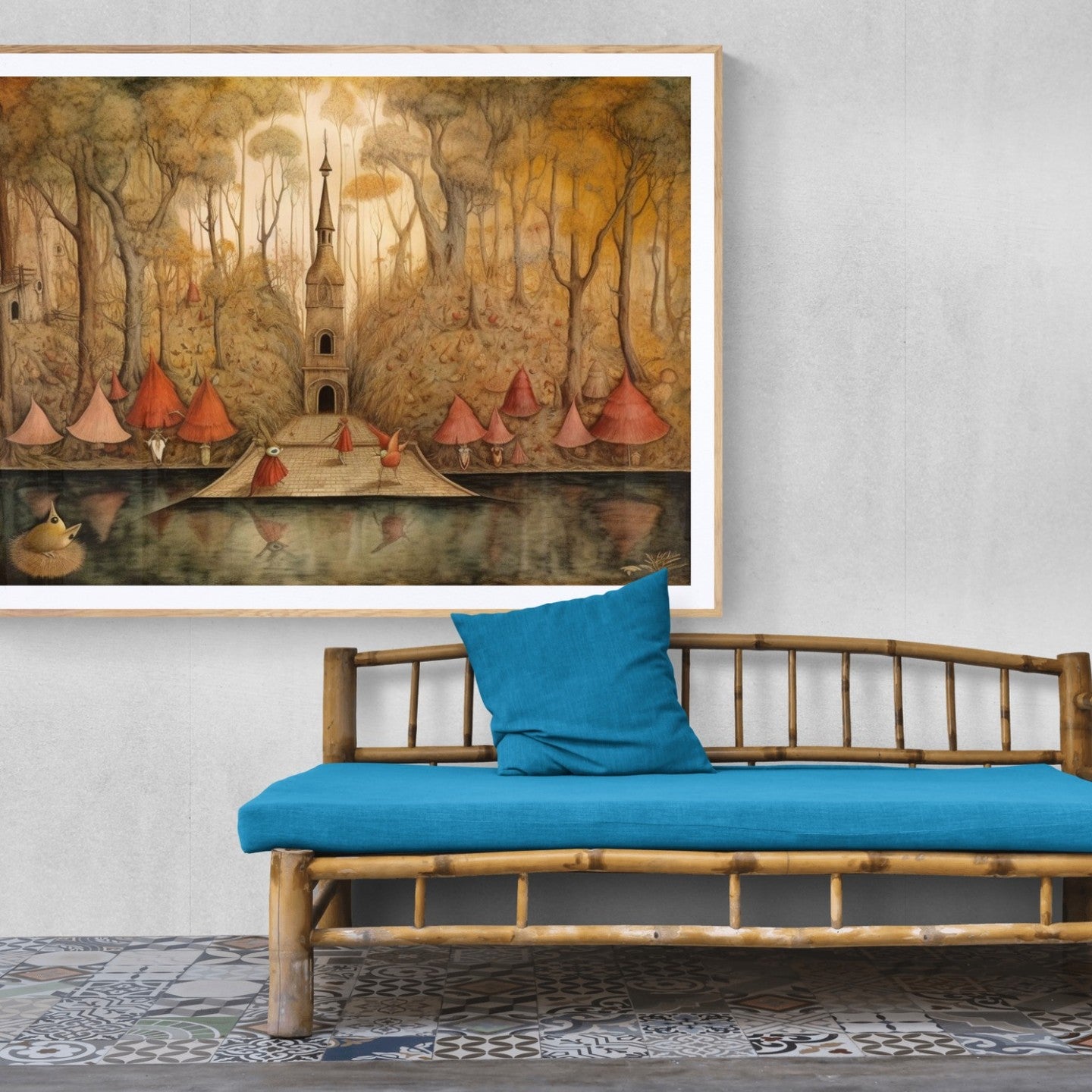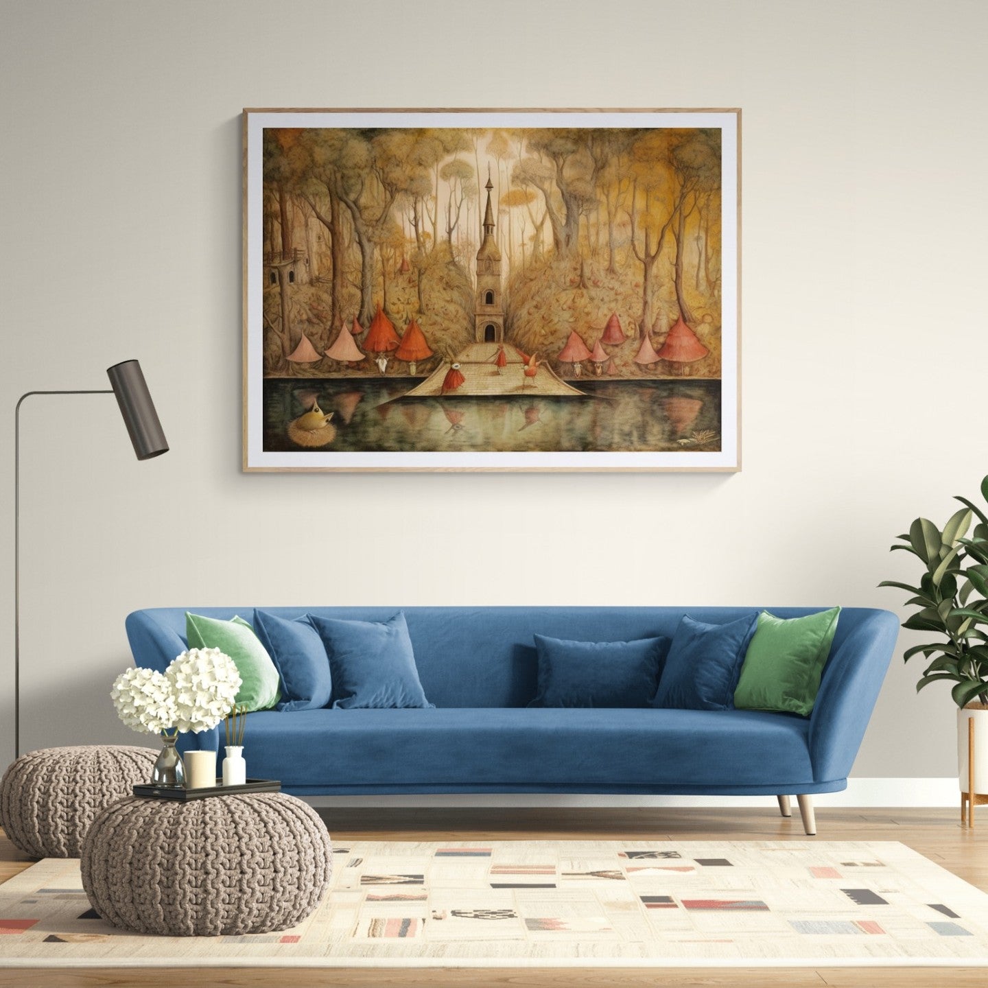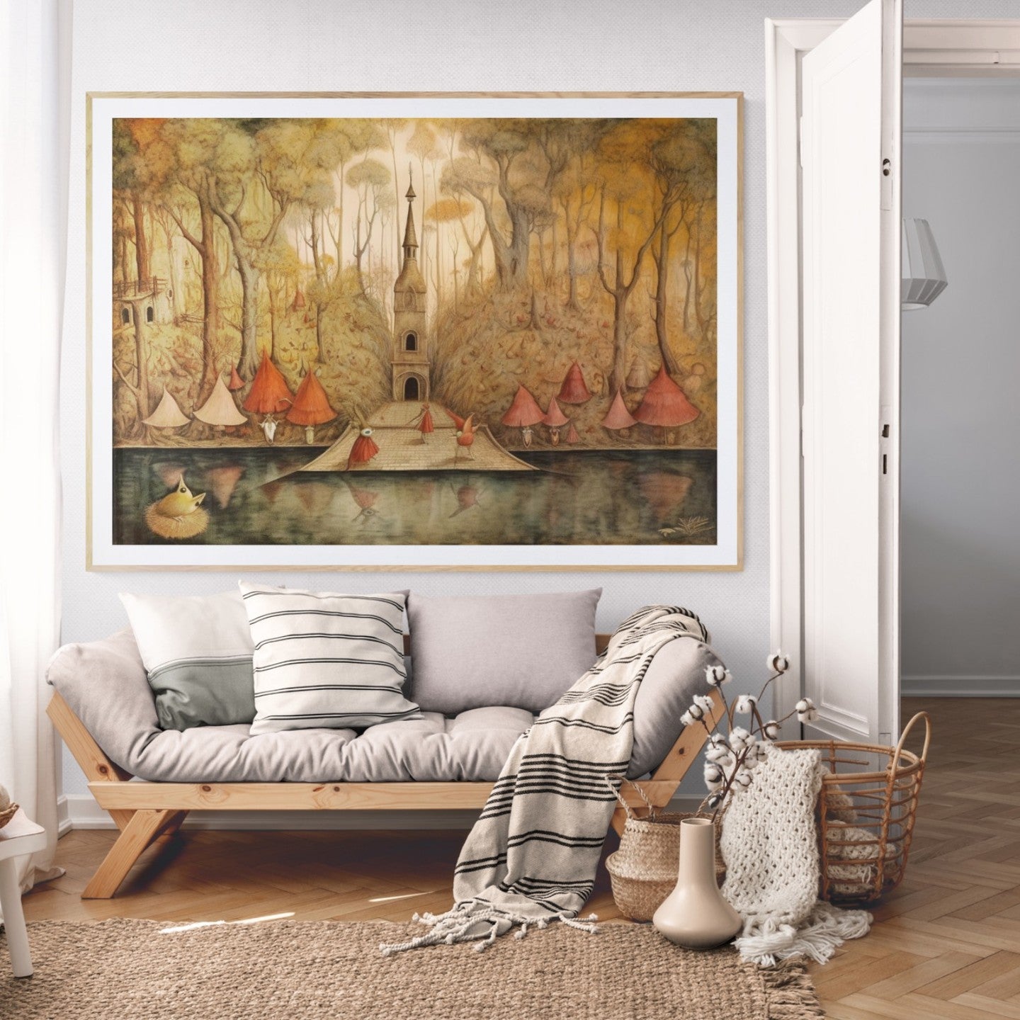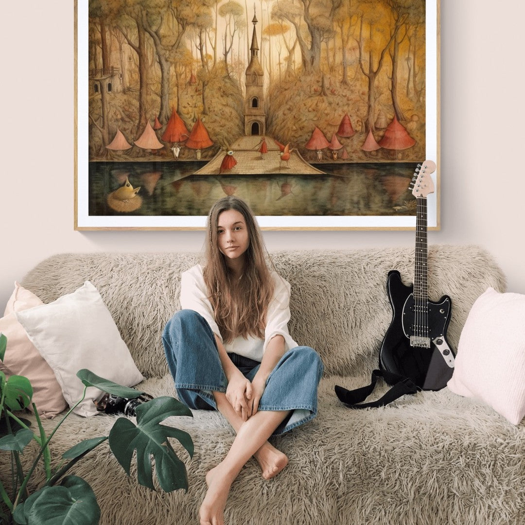 Para obras enmarcadas, sugerimos quitar con cuidado el embalaje protector y colgarla con la ayuda de dos personas, usando clavos resistentes. En el caso de obras de gran tamaño, si es posible, utiliza tornillos y tacos de pared.