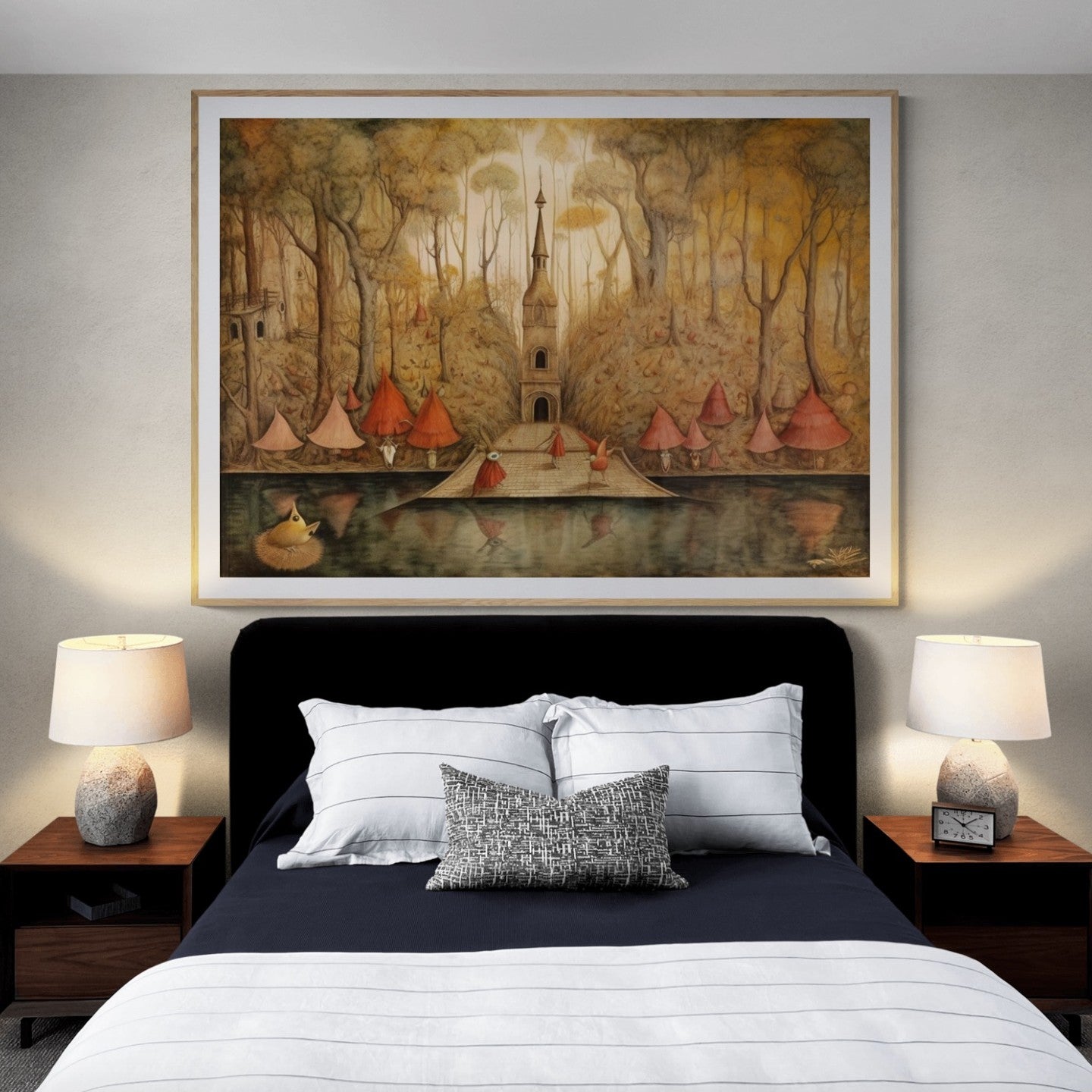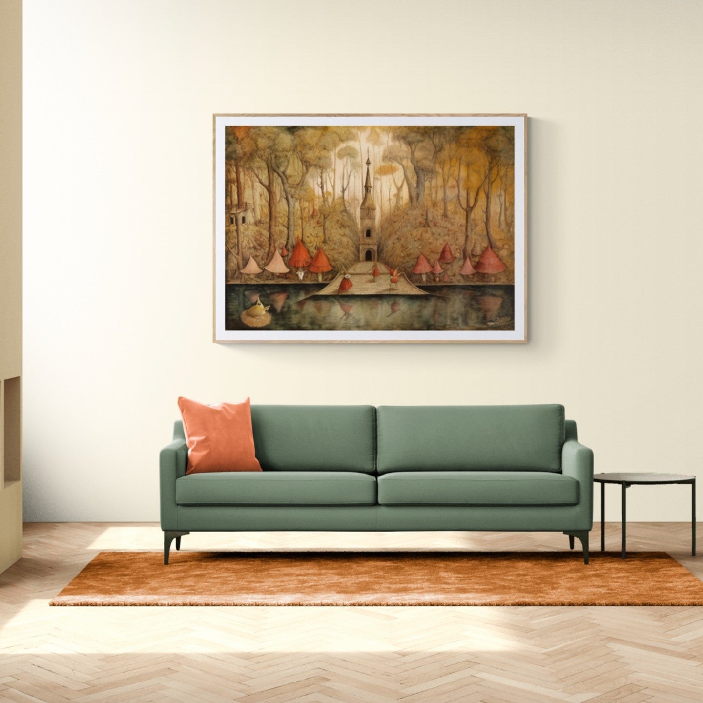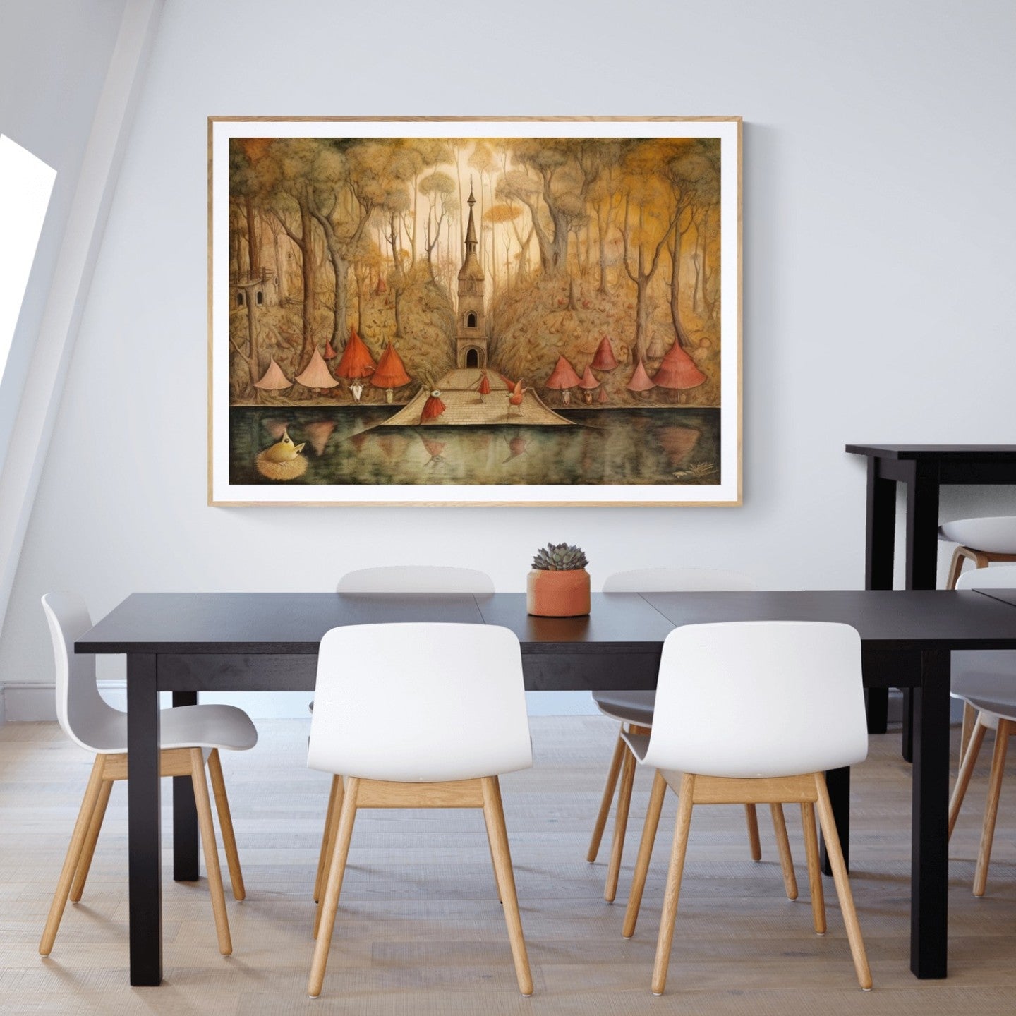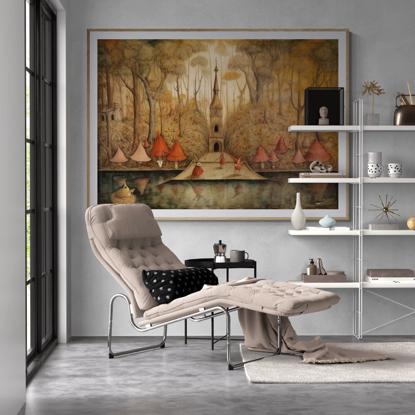 Para obras enmarcadas, sugerimos quitar con cuidado el embalaje protector y colgarla con la ayuda de dos personas, usando clavos resistentes. En el caso de obras de gran tamaño, si es posible, utiliza tornillos y tacos de pared.