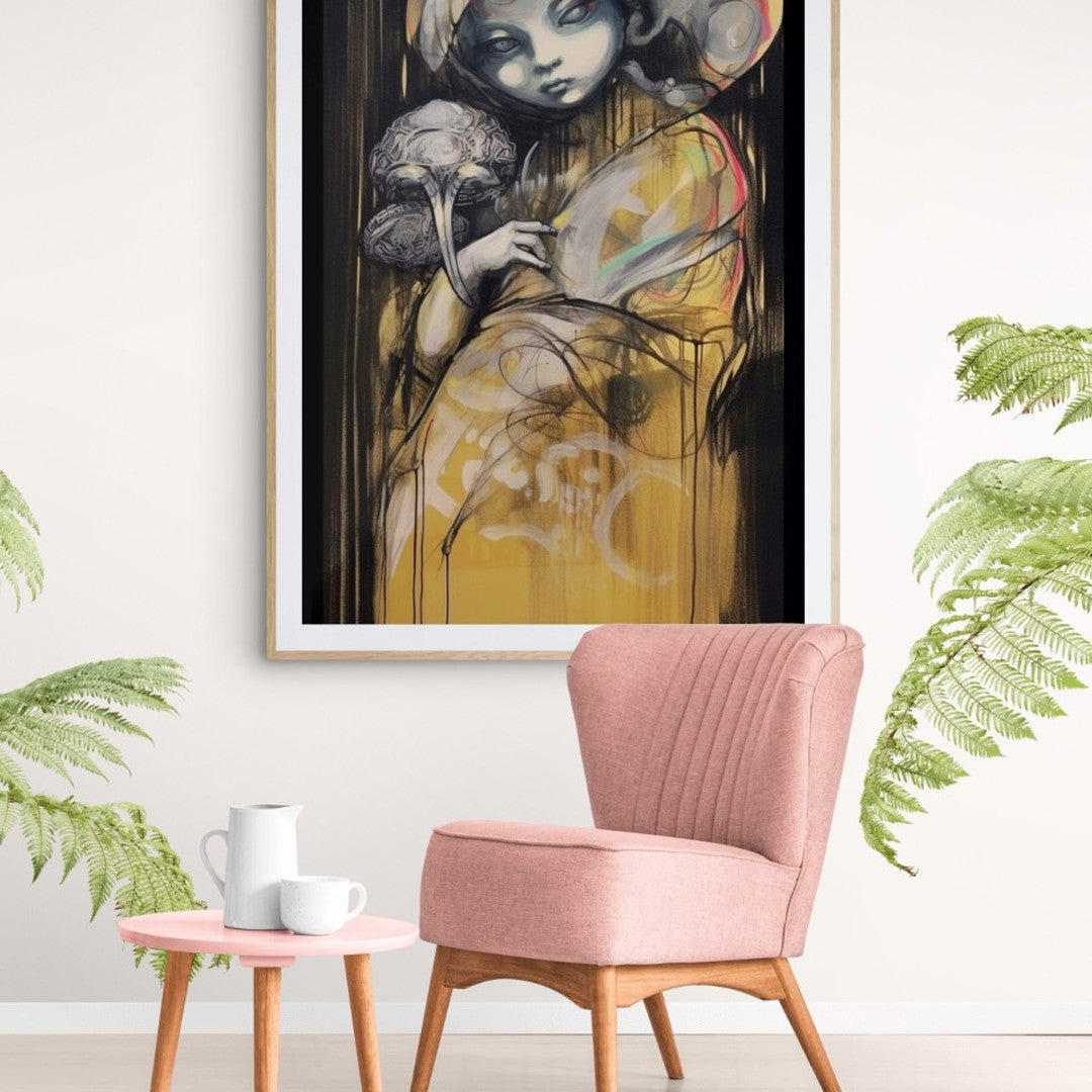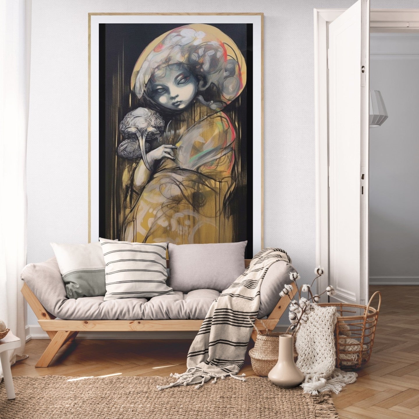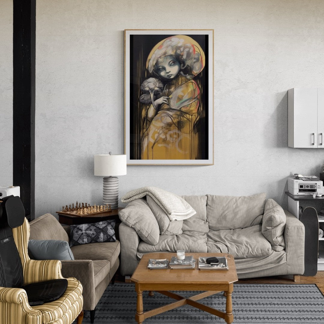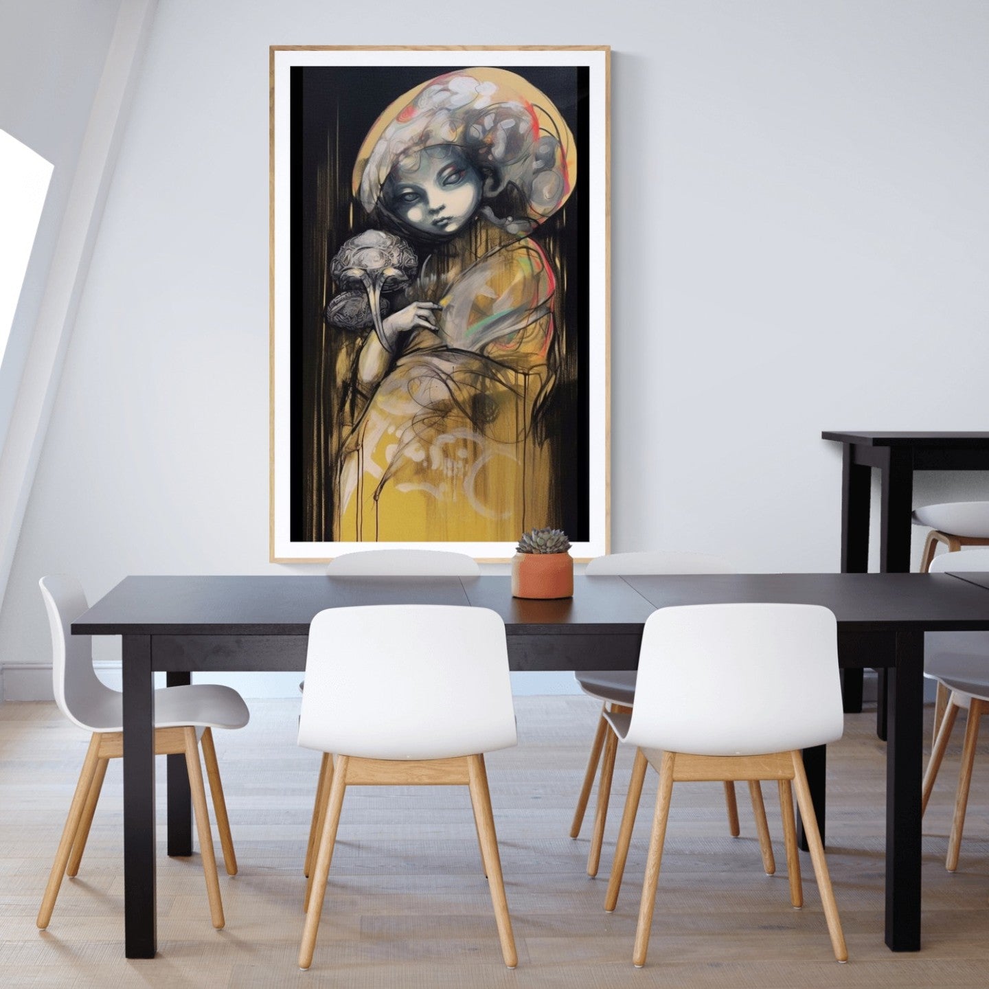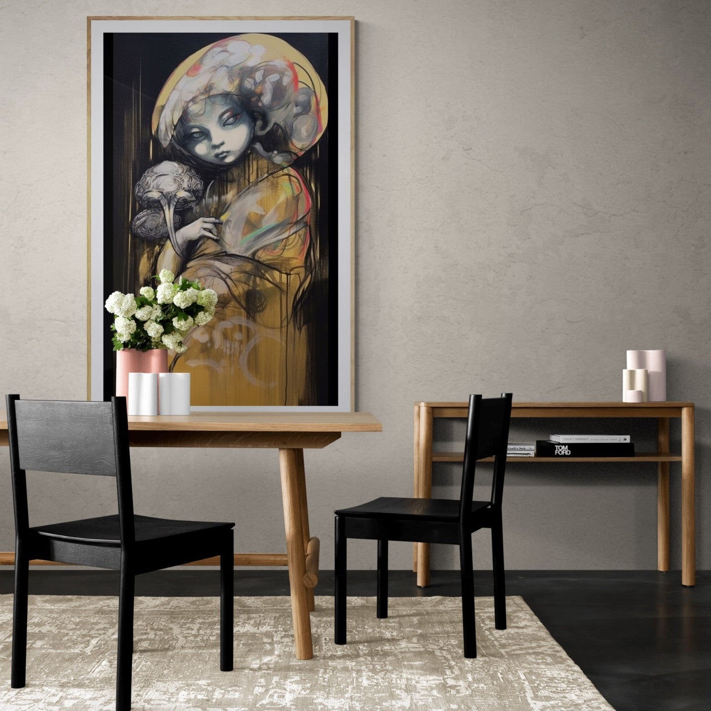 Para obras enmarcadas, sugerimos quitar con cuidado el embalaje protector y colgarla con la ayuda de dos personas, usando clavos resistentes. En el caso de obras de gran tamaño, si es posible, utiliza tornillos y tacos de pared.