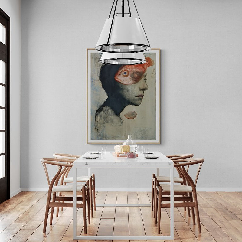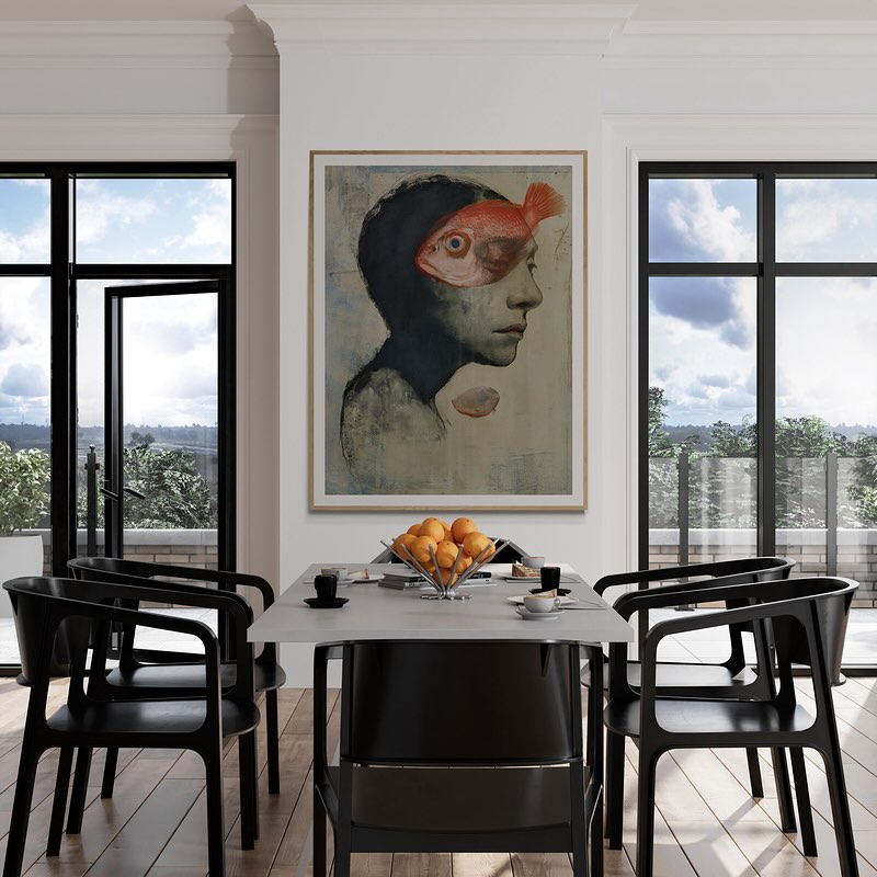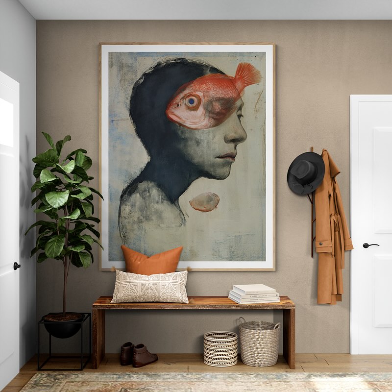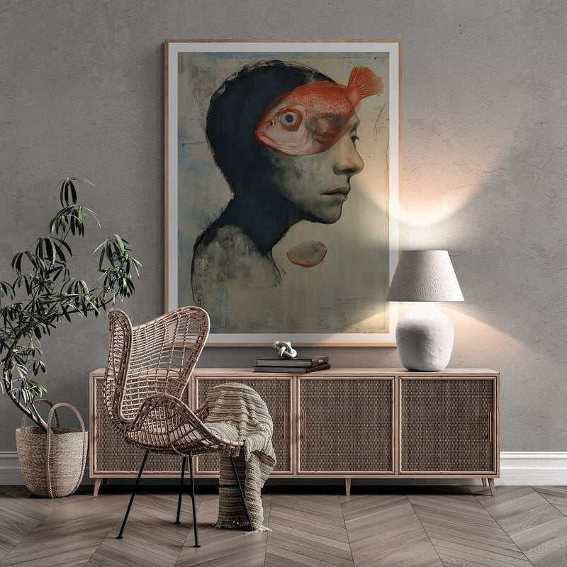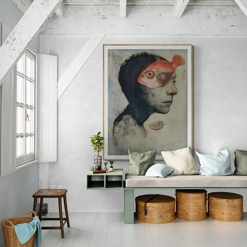 Para obras enmarcadas, sugerimos quitar con cuidado el embalaje protector y colgarla con la ayuda de dos personas, usando clavos resistentes. En el caso de obras de gran tamaño, si es posible, utiliza tornillos y tacos de pared.