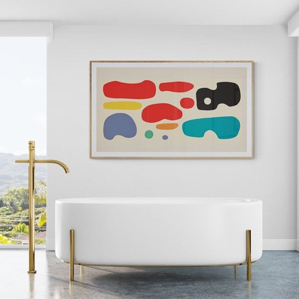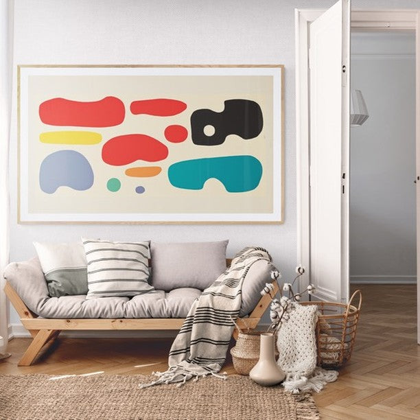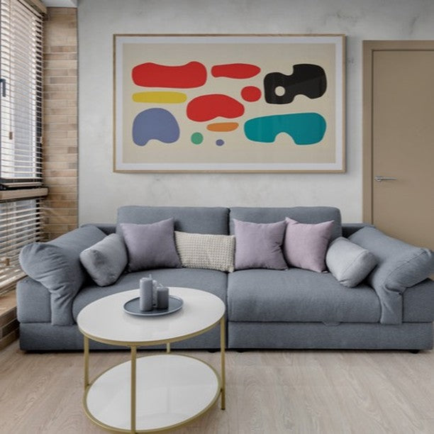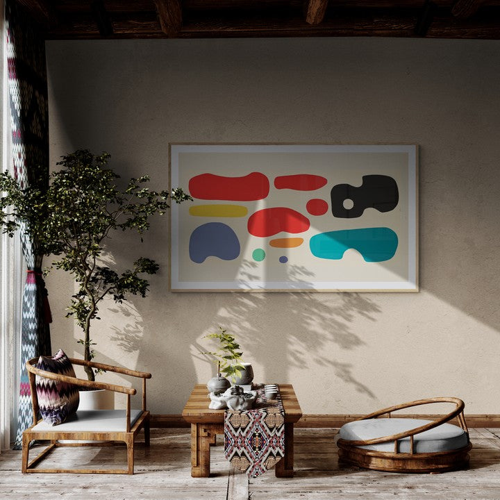 Abstract and elegant colorful minimalist painting of pain blobs.