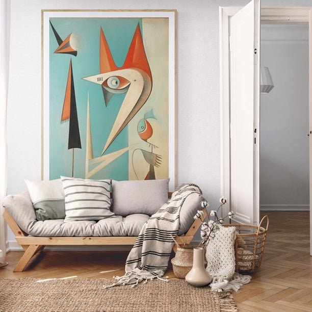 Para obras enmarcadas, sugerimos quitar con cuidado el embalaje protector y colgarla con la ayuda de dos personas, usando clavos resistentes. En el caso de obras de gran tamaño, si es posible, utiliza tornillos y tacos de pared.