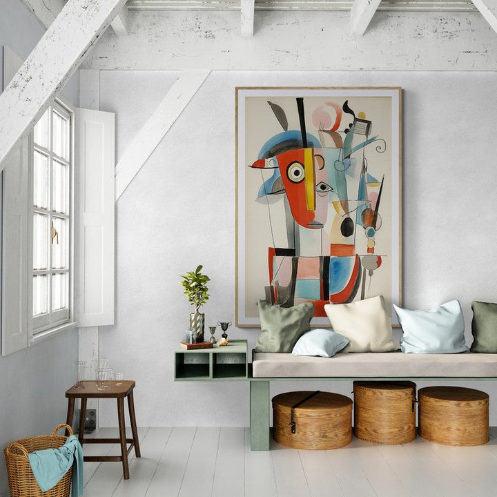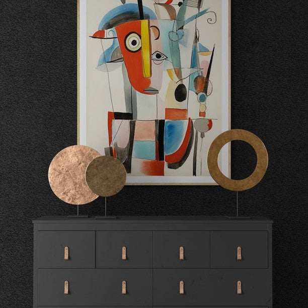 Para obras enmarcadas, sugerimos quitar con cuidado el embalaje protector y colgarla con la ayuda de dos personas, usando clavos resistentes. En el caso de obras de gran tamaño, si es posible, utiliza tornillos y tacos de pared.