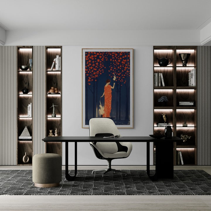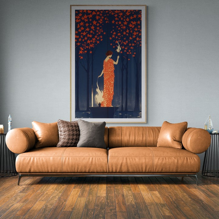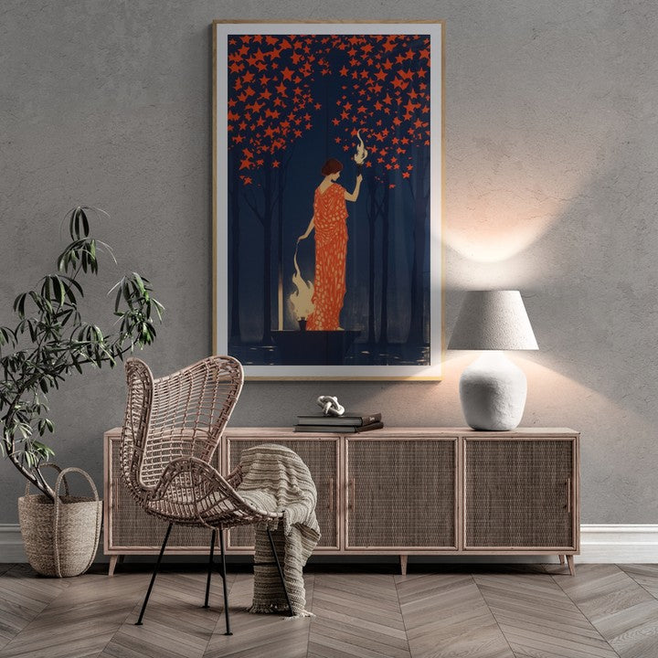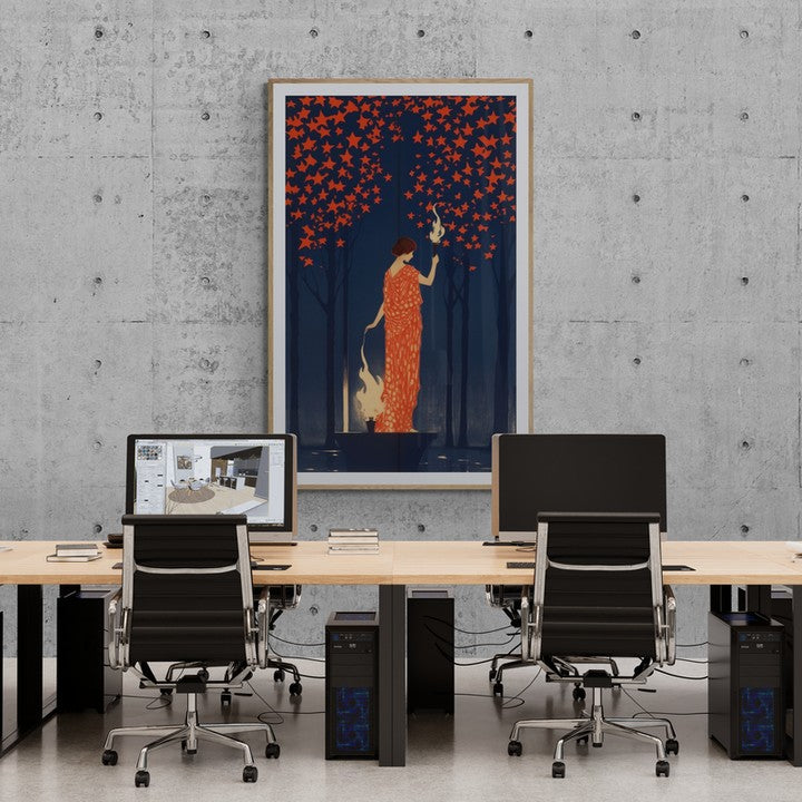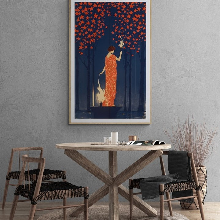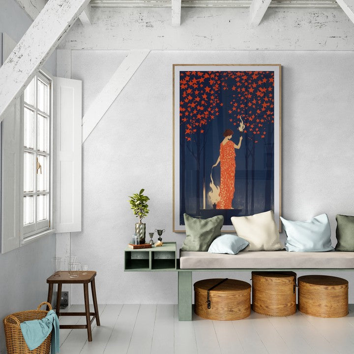 Para obras enmarcadas, sugerimos quitar con cuidado el embalaje protector y colgarla con la ayuda de dos personas, usando clavos resistentes. En el caso de obras de gran tamaño, si es posible, utiliza tornillos y tacos de pared.