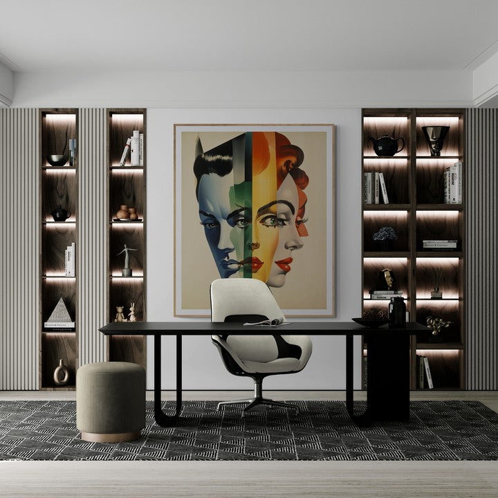 Para obras enmarcadas, sugerimos quitar con cuidado el embalaje protector y colgarla con la ayuda de dos personas, usando clavos resistentes. En el caso de obras de gran tamaño, si es posible, utiliza tornillos y tacos de pared.