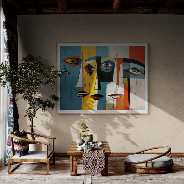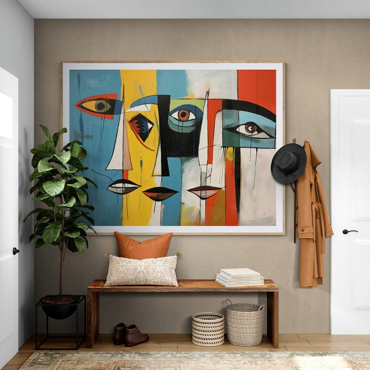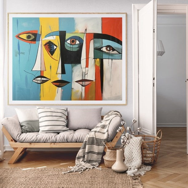 Para obras enmarcadas, sugerimos quitar con cuidado el embalaje protector y colgarla con la ayuda de dos personas, usando clavos resistentes. En el caso de obras de gran tamaño, si es posible, utiliza tornillos y tacos de pared.