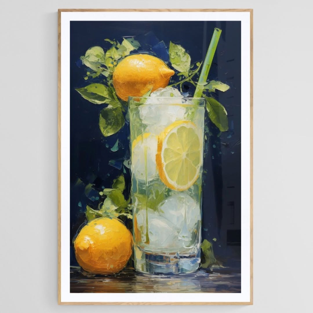 Oil colorful painting of a delicious lemonade.