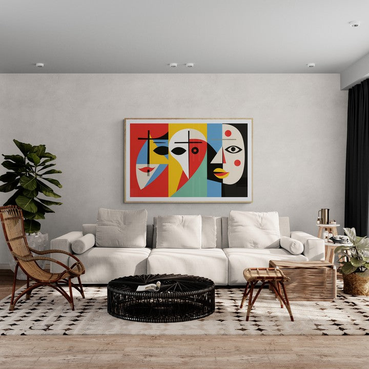 Para obras enmarcadas, sugerimos quitar con cuidado el embalaje protector y colgarla con la ayuda de dos personas, usando clavos resistentes. En el caso de obras de gran tamaño, si es posible, utiliza tornillos y tacos de pared.