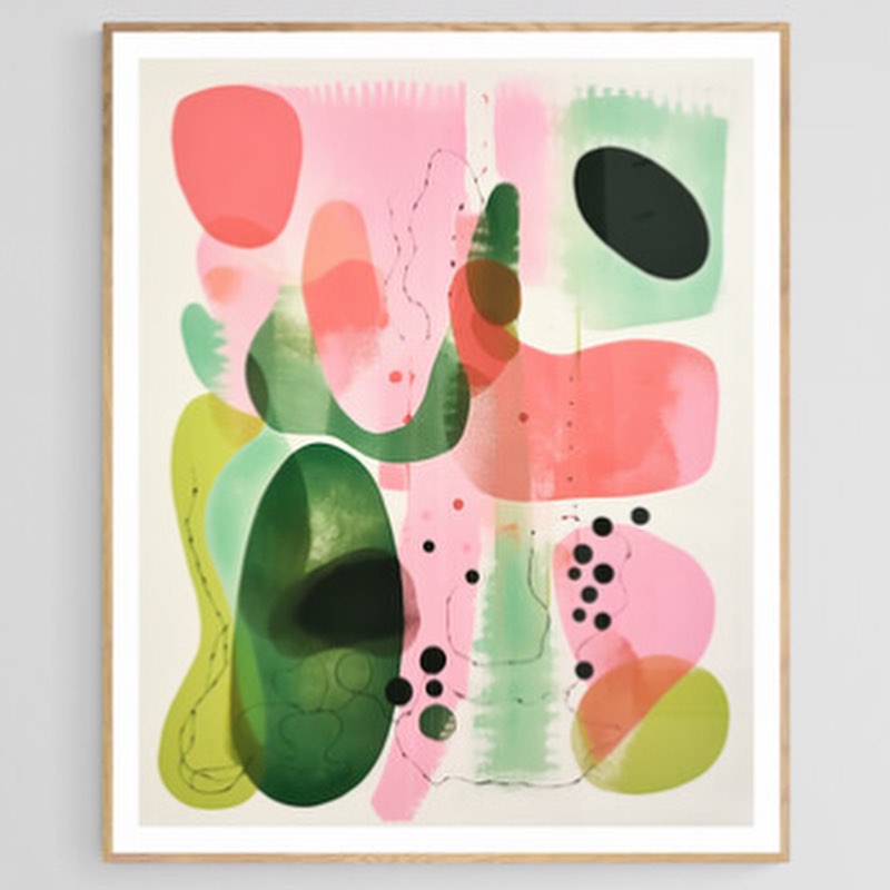 Green and pink color abstract watercolor art.