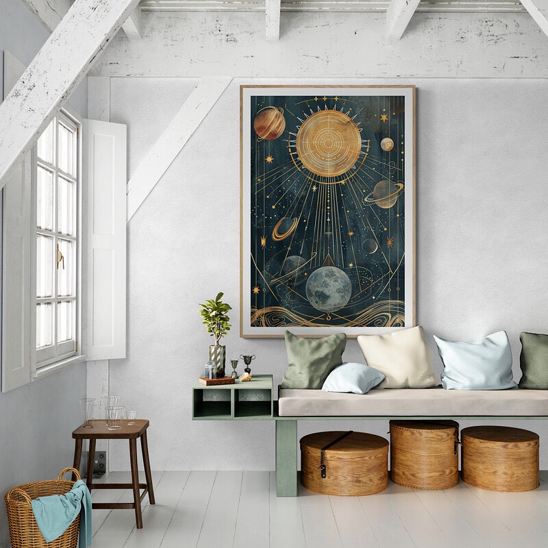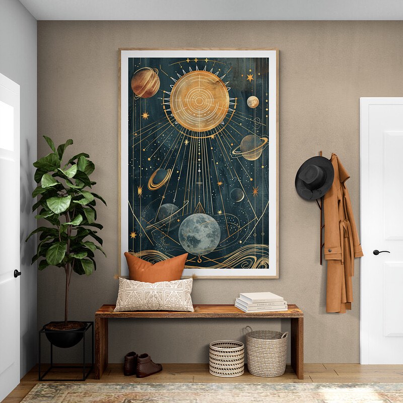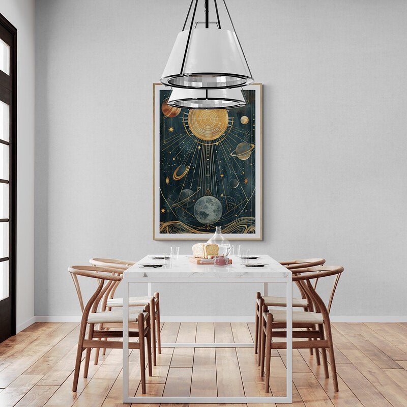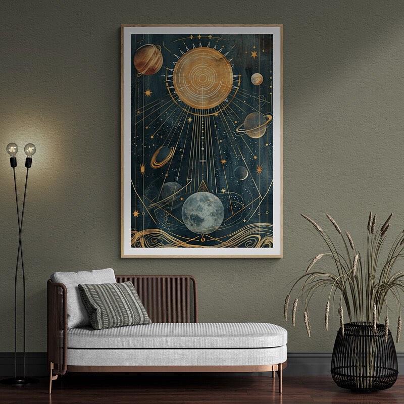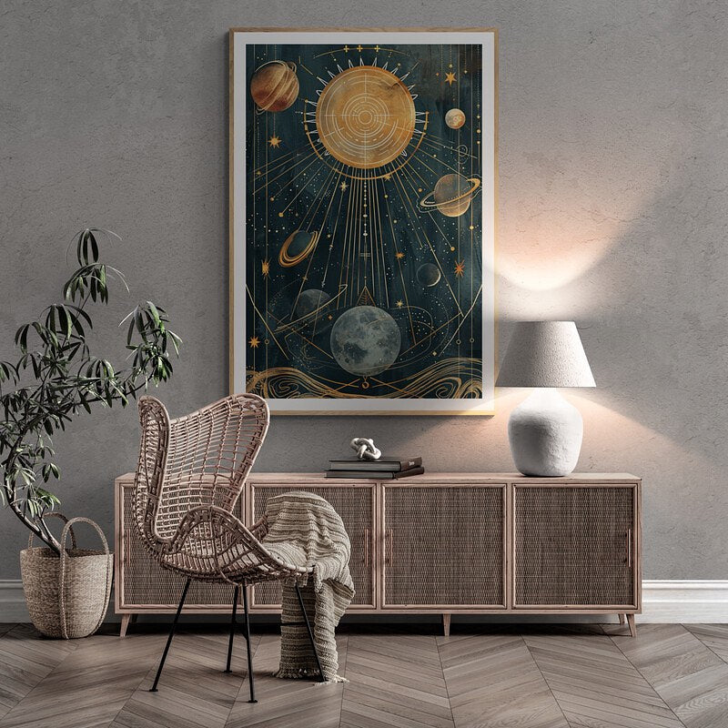 Para obras enmarcadas, sugerimos quitar con cuidado el embalaje protector y colgarla con la ayuda de dos personas, usando clavos resistentes. En el caso de obras de gran tamaño, si es posible, utiliza tornillos y tacos de pared.