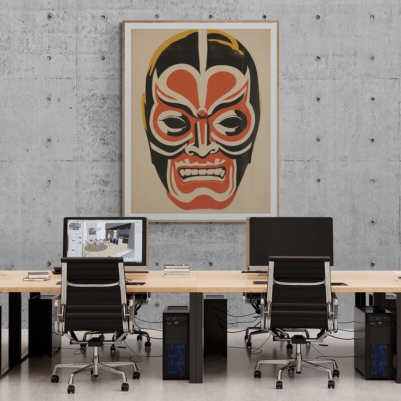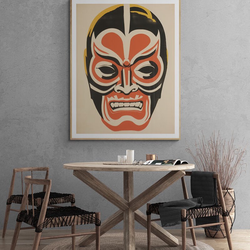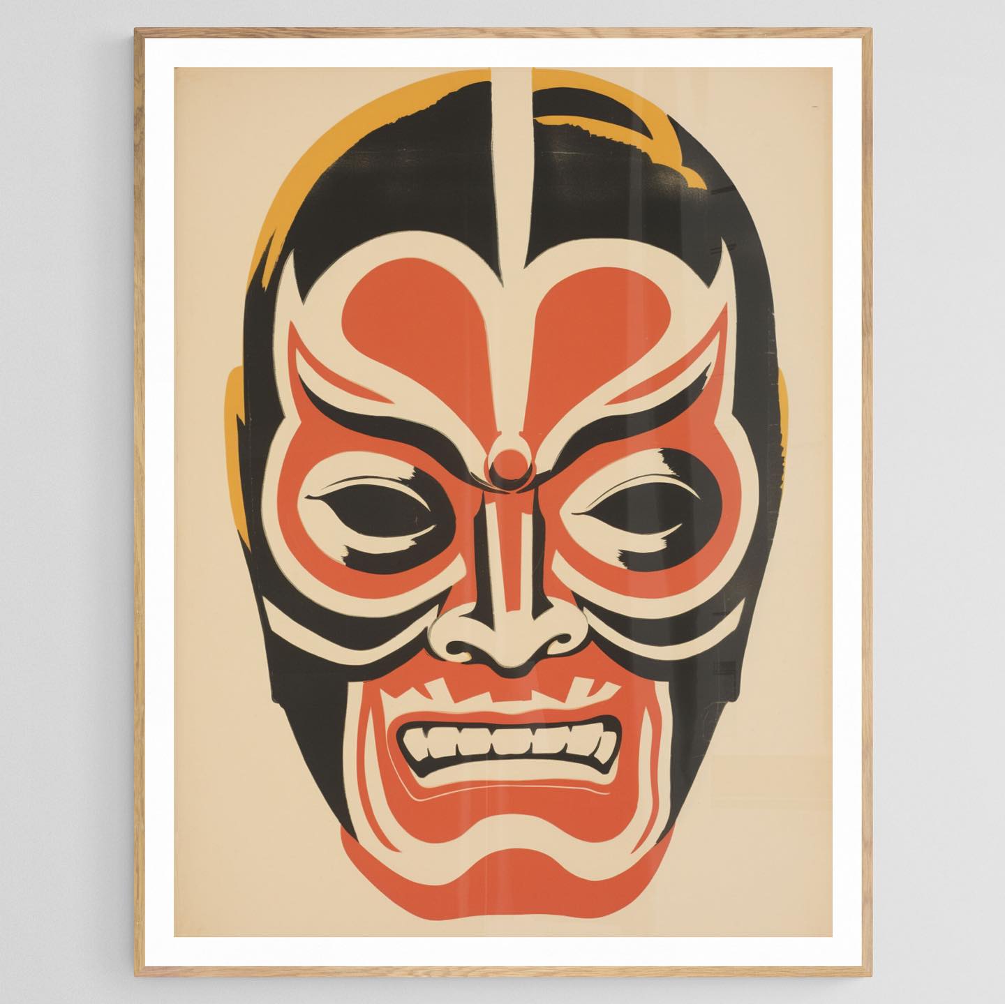 Yase-Otoko traditional Japanese mask in mani malís tart drawing.