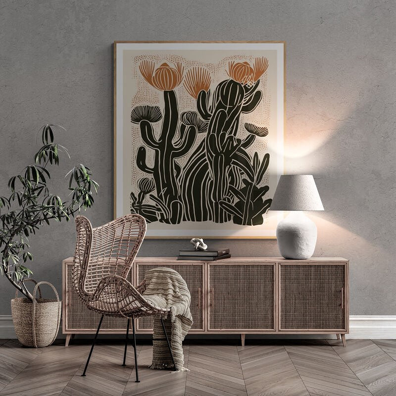 Para obras enmarcadas, sugerimos quitar con cuidado el embalaje protector y colgarla con la ayuda de dos personas, usando clavos resistentes. En el caso de obras de gran tamaño, si es posible, utiliza tornillos y tacos de pared.