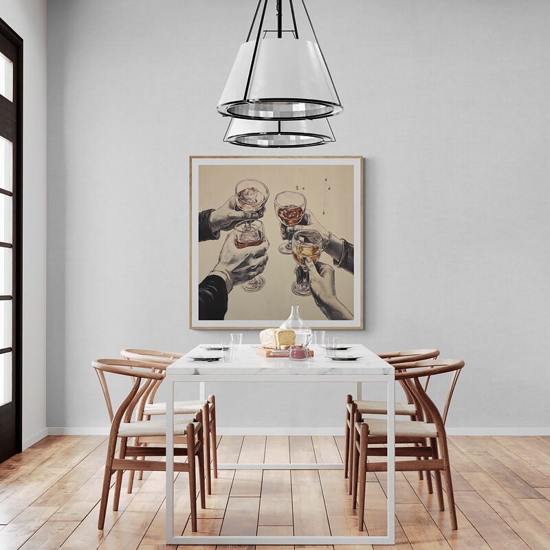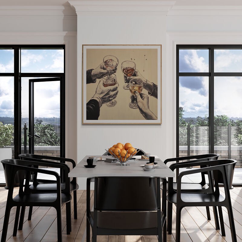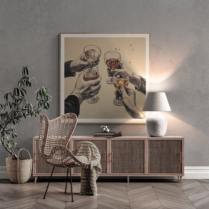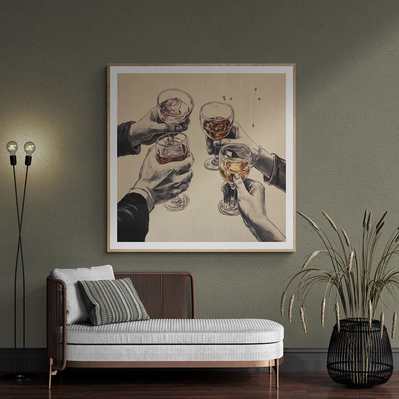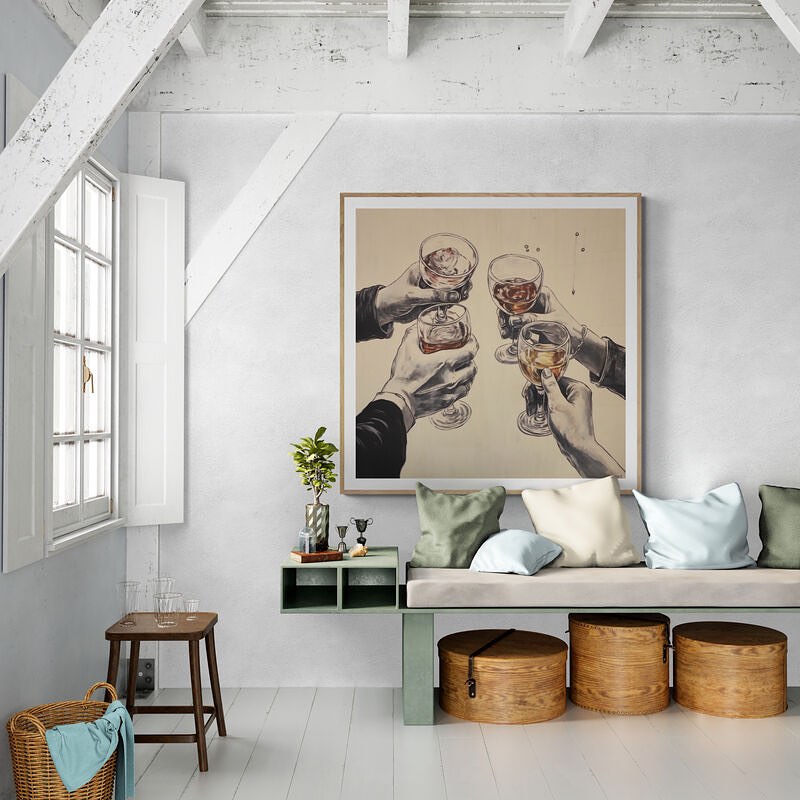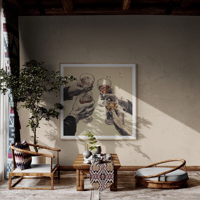 Para obras enmarcadas, sugerimos quitar con cuidado el embalaje protector y colgarla con la ayuda de dos personas, usando clavos resistentes. En el caso de obras de gran tamaño, si es posible, utiliza tornillos y tacos de pared.