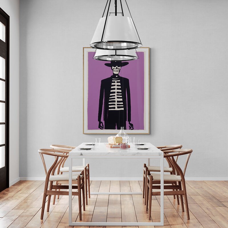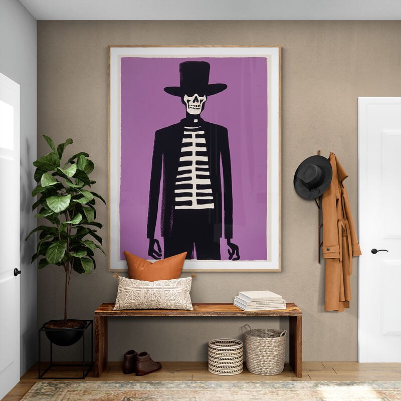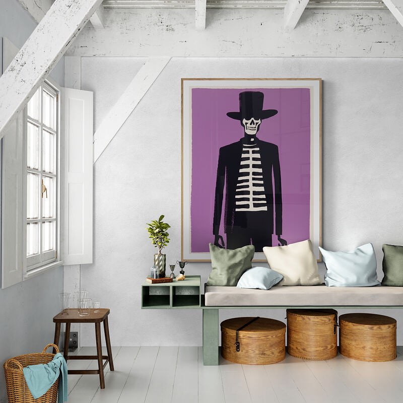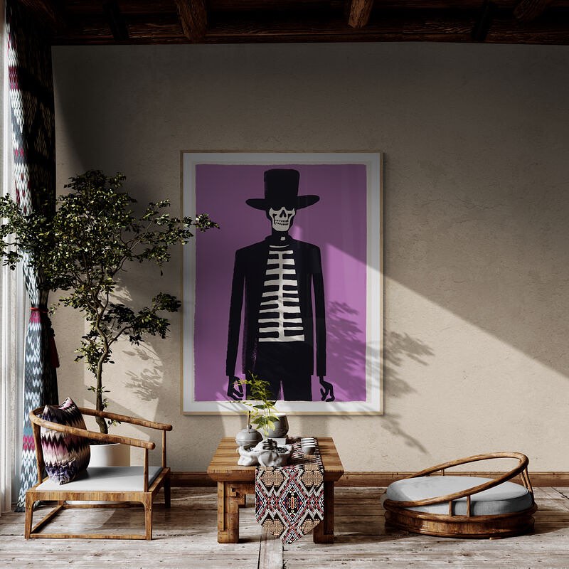 Para obras enmarcadas, sugerimos quitar con cuidado el embalaje protector y colgarla con la ayuda de dos personas, usando clavos resistentes. En el caso de obras de gran tamaño, si es posible, utiliza tornillos y tacos de pared.