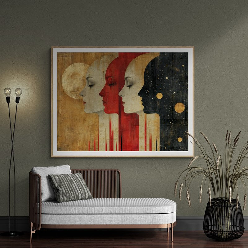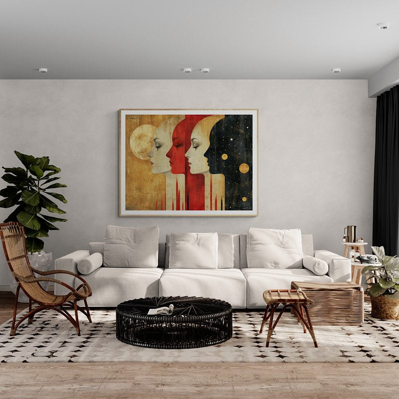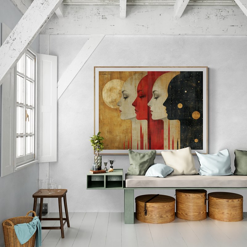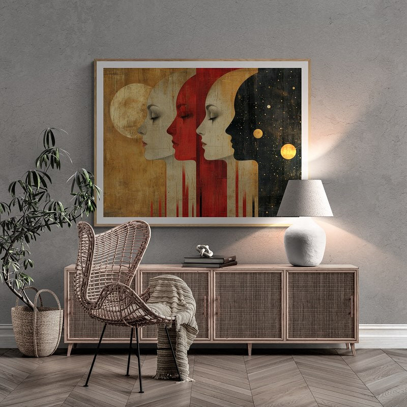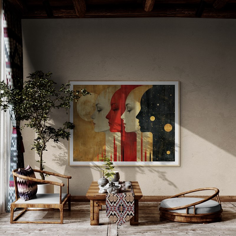 Para obras enmarcadas, sugerimos quitar con cuidado el embalaje protector y colgarla con la ayuda de dos personas, usando clavos resistentes. En el caso de obras de gran tamaño, si es posible, utiliza tornillos y tacos de pared.