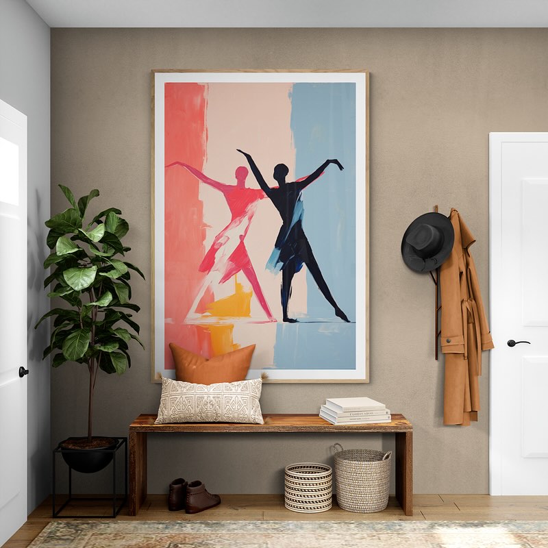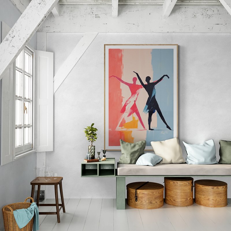 Para obras enmarcadas, sugerimos quitar con cuidado el embalaje protector y colgarla con la ayuda de dos personas, usando clavos resistentes. En el caso de obras de gran tamaño, si es posible, utiliza tornillos y tacos de pared.