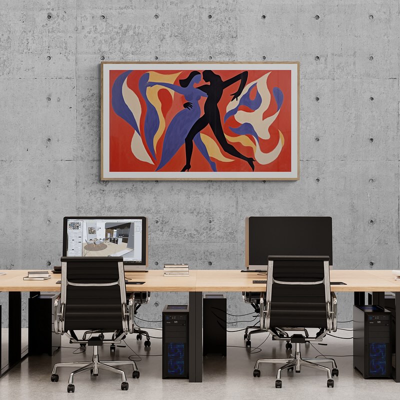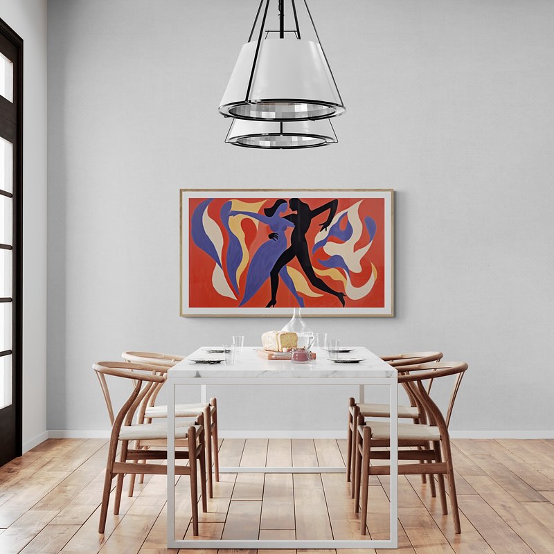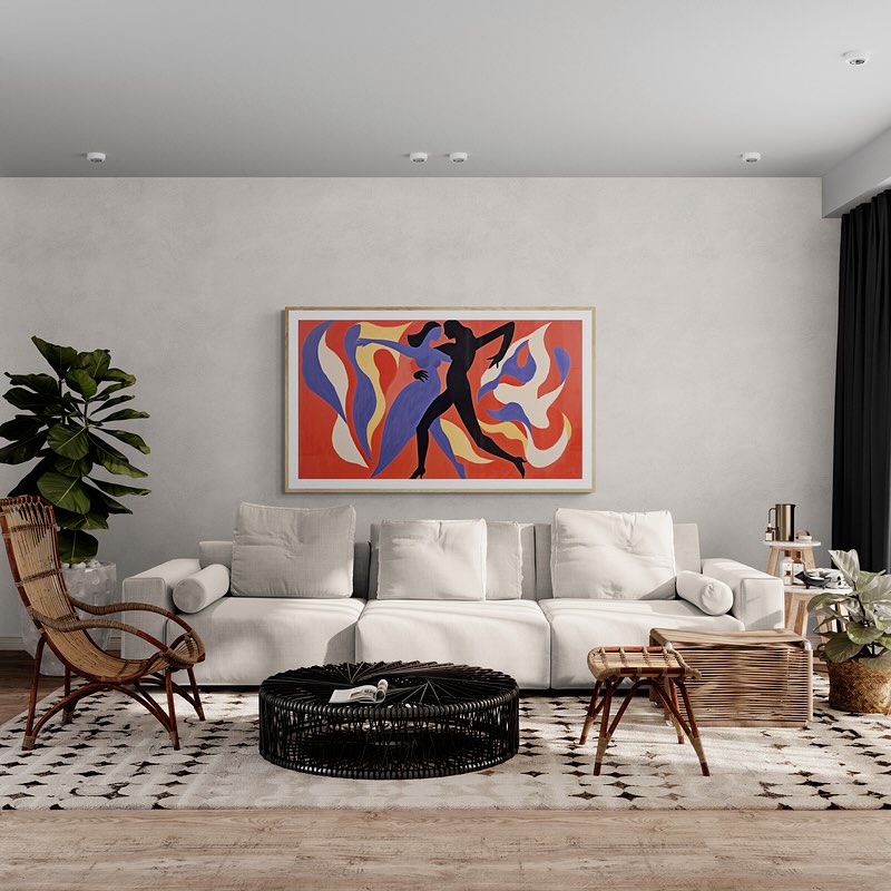 Para obras enmarcadas, sugerimos quitar con cuidado el embalaje protector y colgarla con la ayuda de dos personas, usando clavos resistentes. En el caso de obras de gran tamaño, si es posible, utiliza tornillos y tacos de pared.