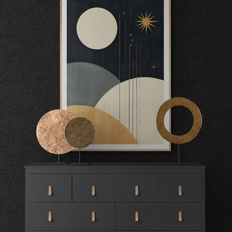 Para obras enmarcadas, sugerimos quitar con cuidado el embalaje protector y colgarla con la ayuda de dos personas, usando clavos resistentes. En el caso de obras de gran tamaño, si es posible, utiliza tornillos y tacos de pared.