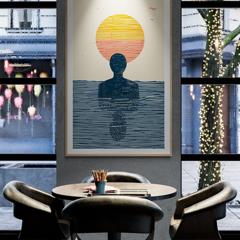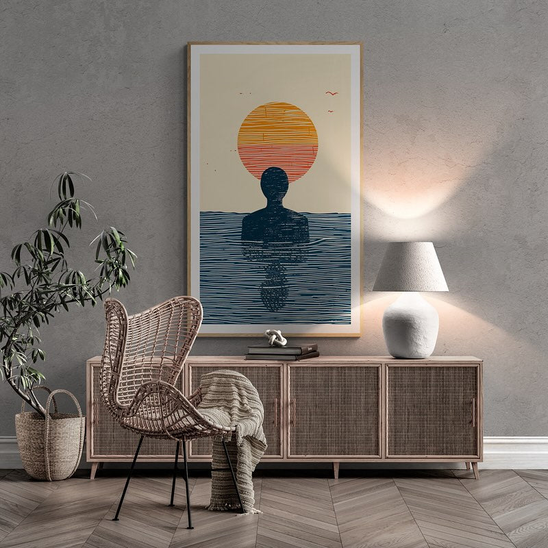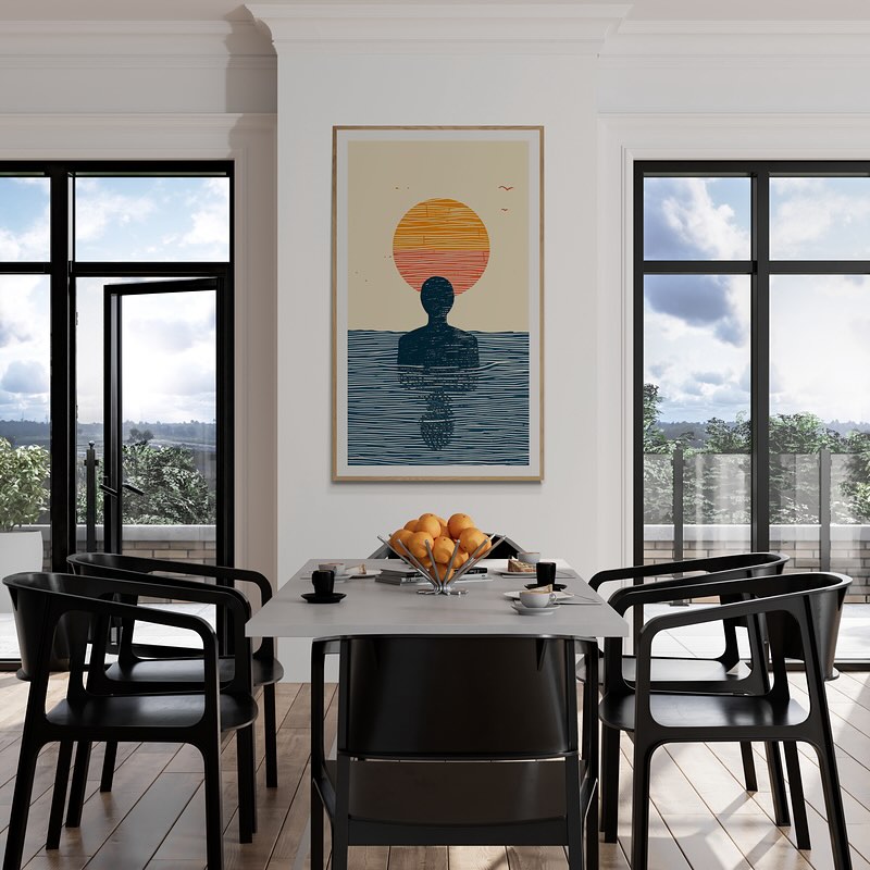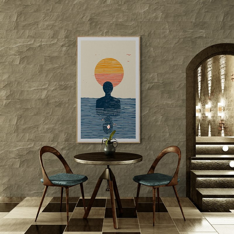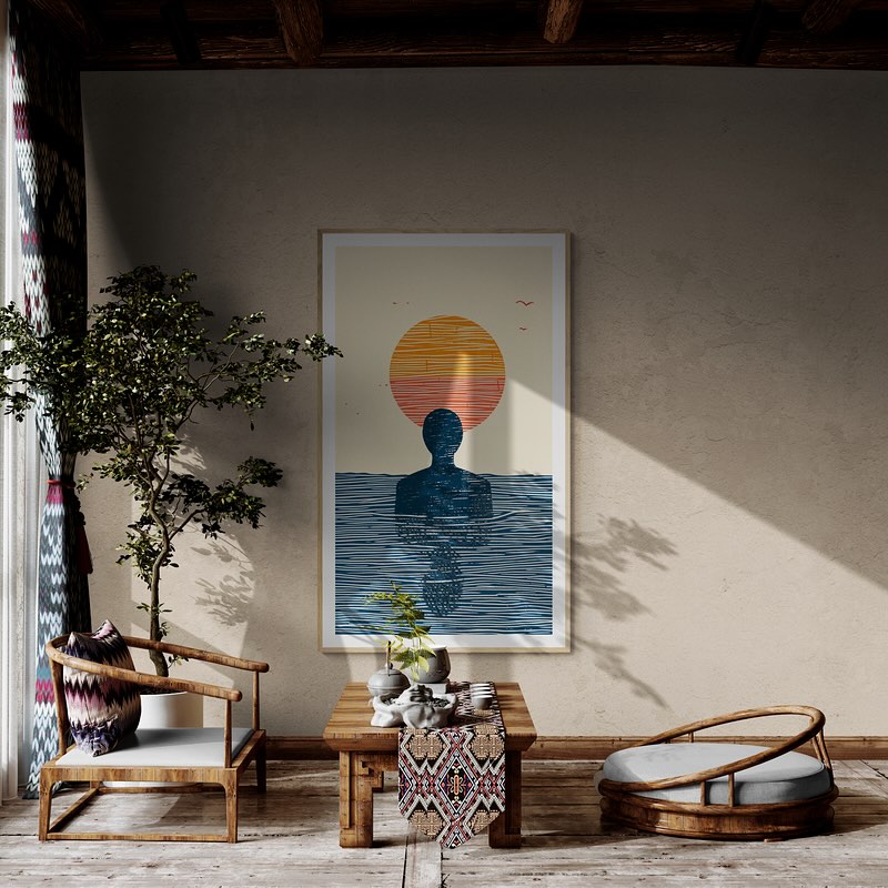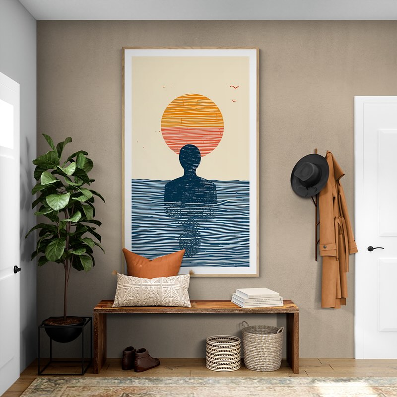 Para obras enmarcadas, sugerimos quitar con cuidado el embalaje protector y colgarla con la ayuda de dos personas, usando clavos resistentes. En el caso de obras de gran tamaño, si es posible, utiliza tornillos y tacos de pared.