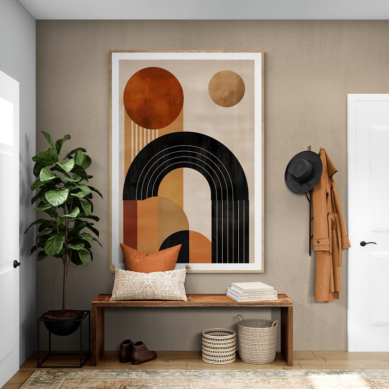 Para obras enmarcadas, sugerimos quitar con cuidado el embalaje protector y colgarla con la ayuda de dos personas, usando clavos resistentes. En el caso de obras de gran tamaño, si es posible, utiliza tornillos y tacos de pared.