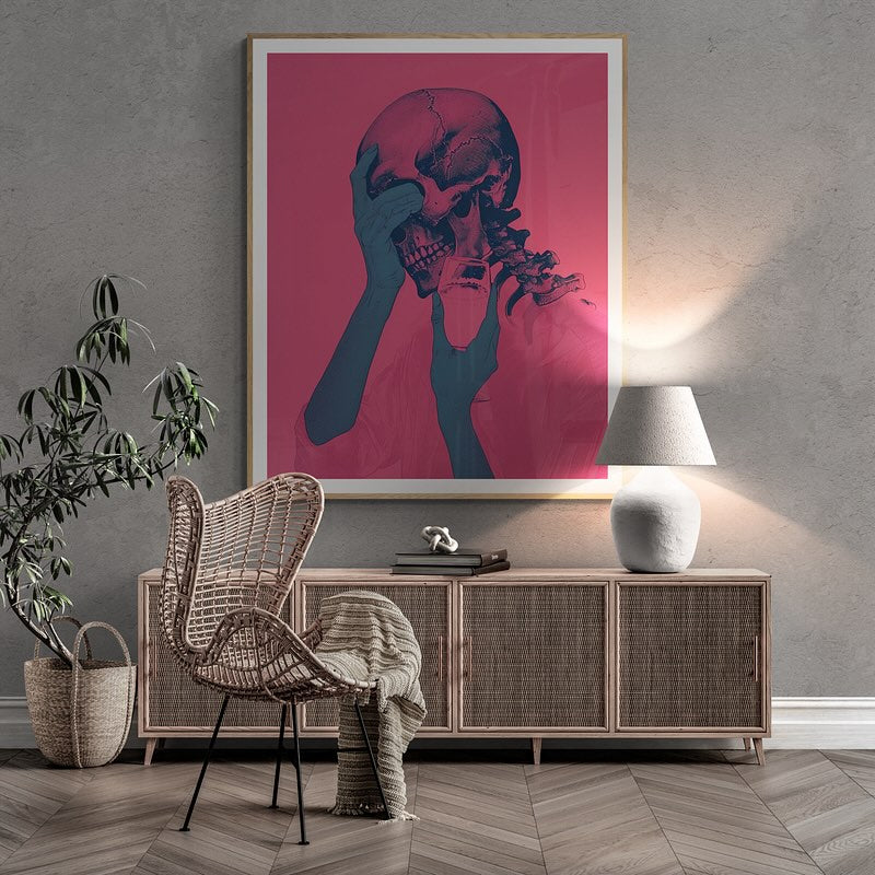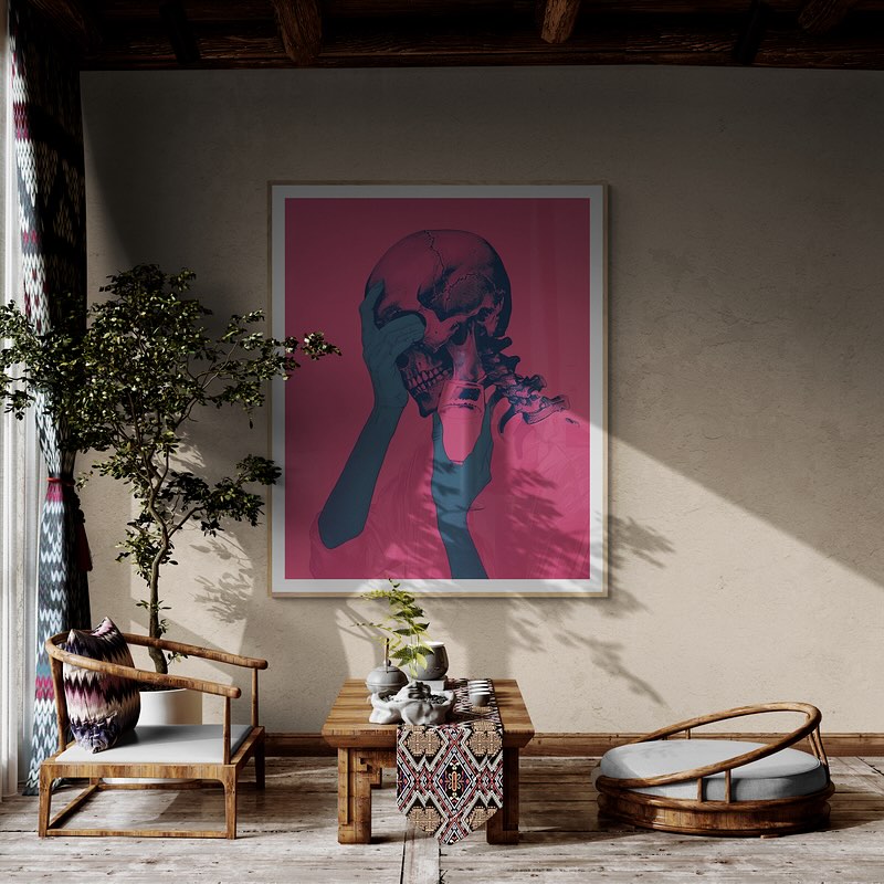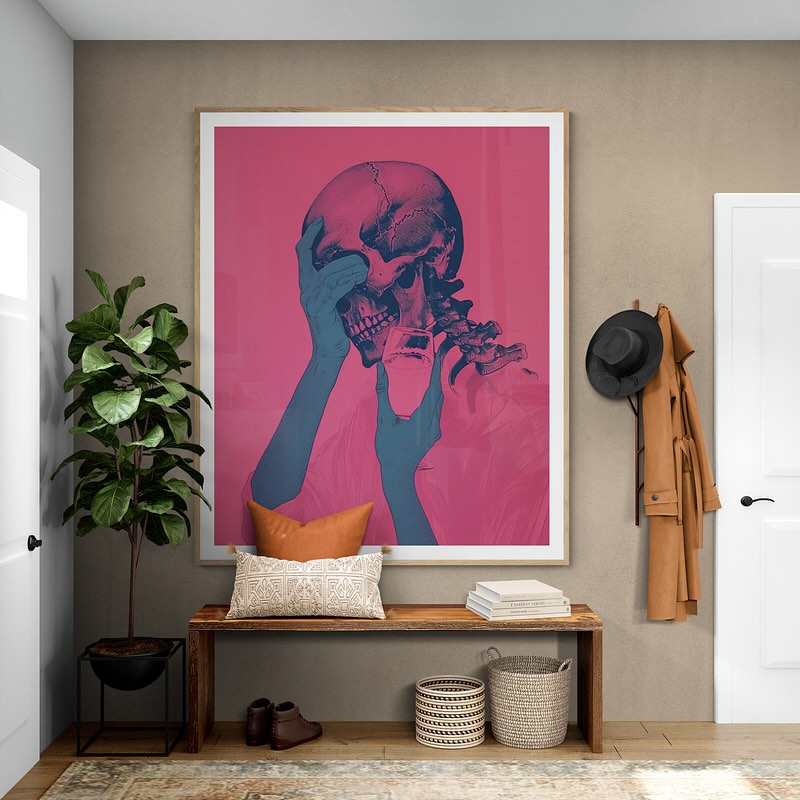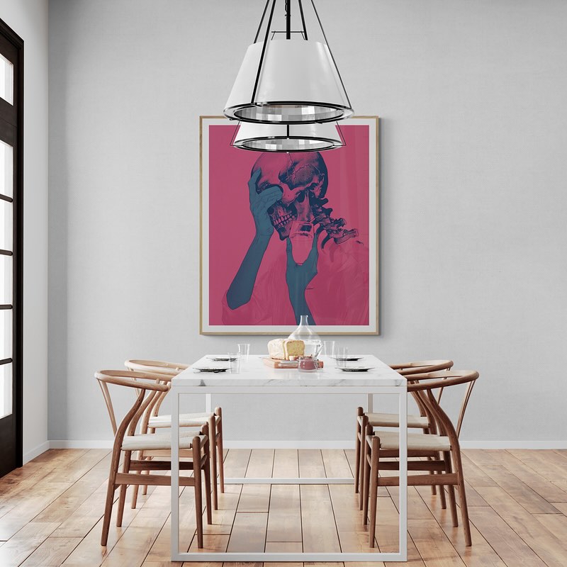 Para obras enmarcadas, sugerimos quitar con cuidado el embalaje protector y colgarla con la ayuda de dos personas, usando clavos resistentes. En el caso de obras de gran tamaño, si es posible, utiliza tornillos y tacos de pared.