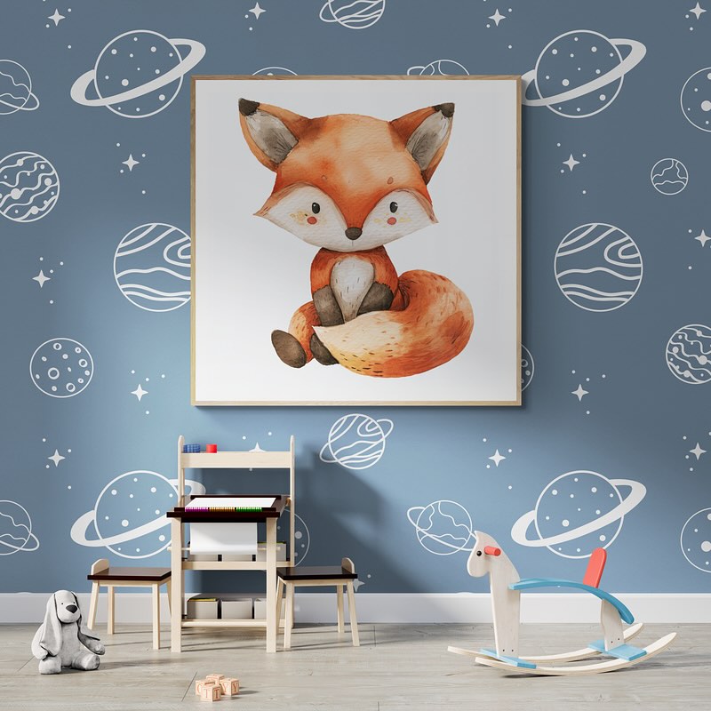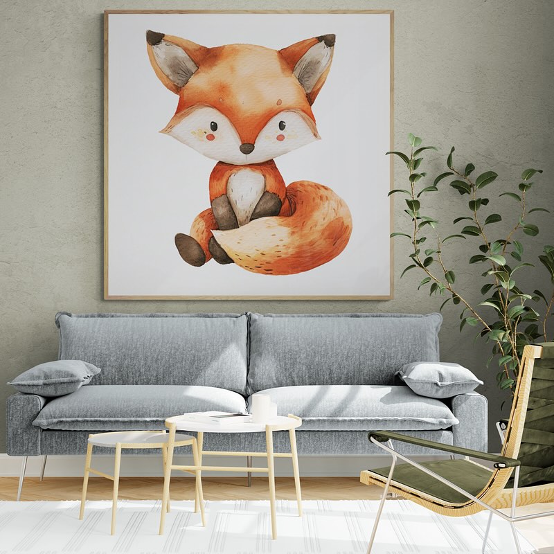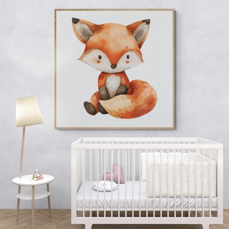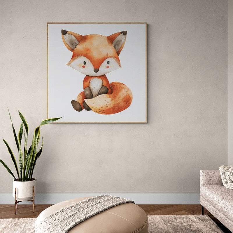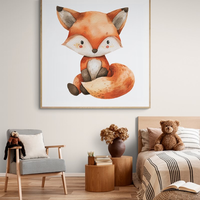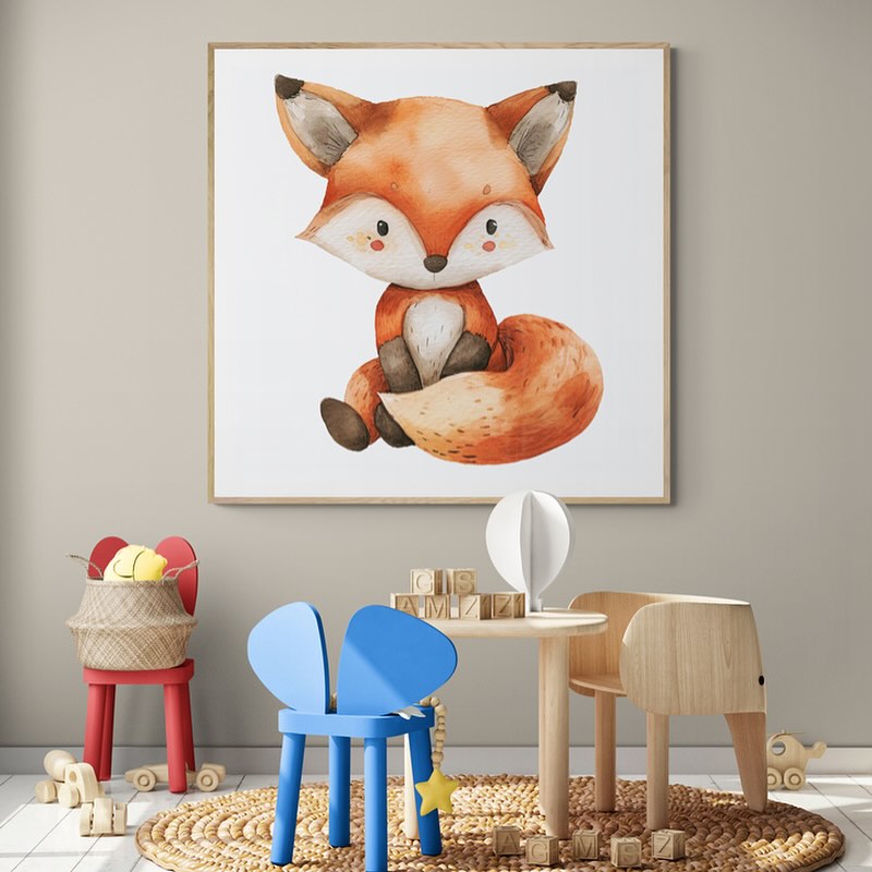 A cute fox children art in whatercolors.