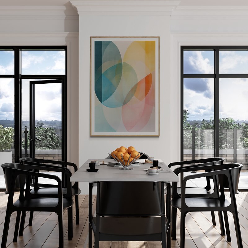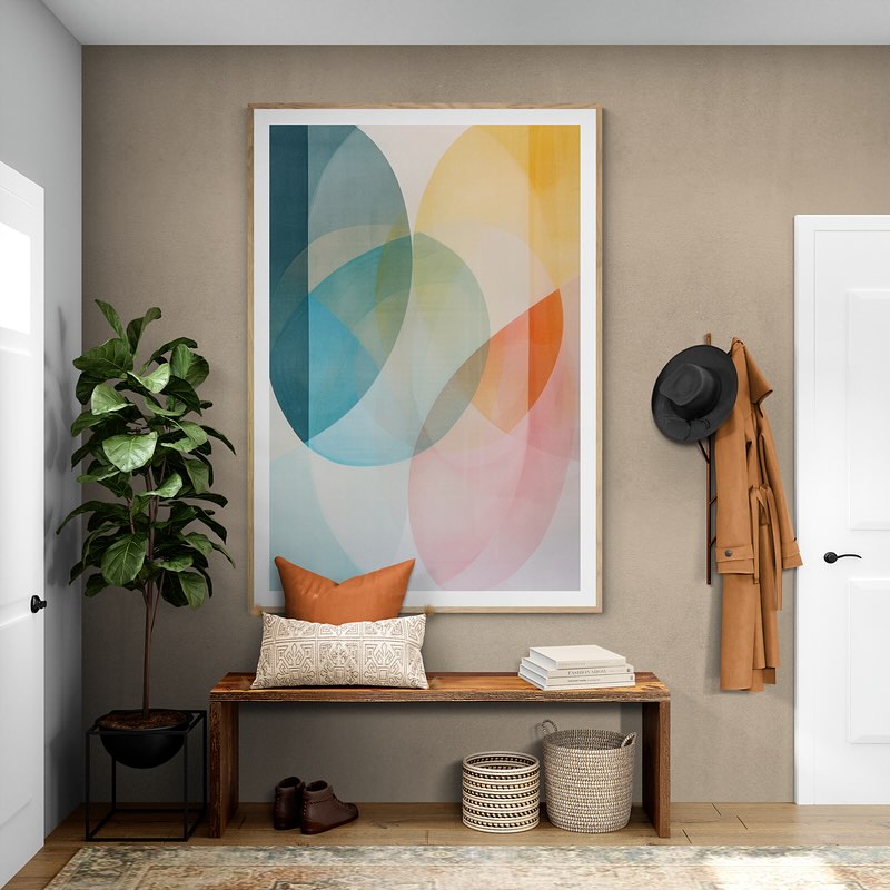 Para obras enmarcadas, sugerimos quitar con cuidado el embalaje protector y colgarla con la ayuda de dos personas, usando clavos resistentes. En el caso de obras de gran tamaño, si es posible, utiliza tornillos y tacos de pared.