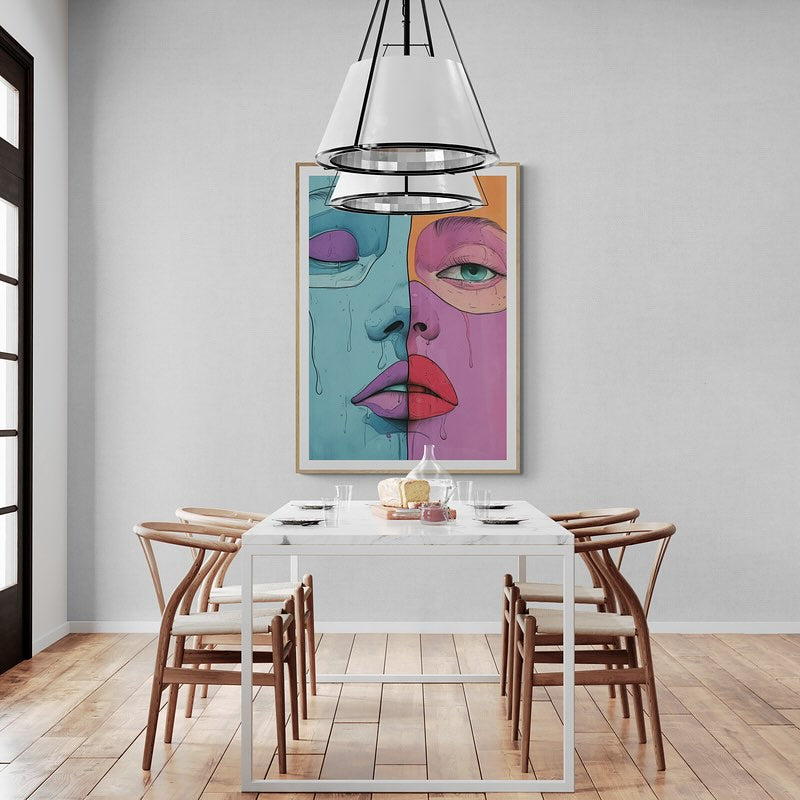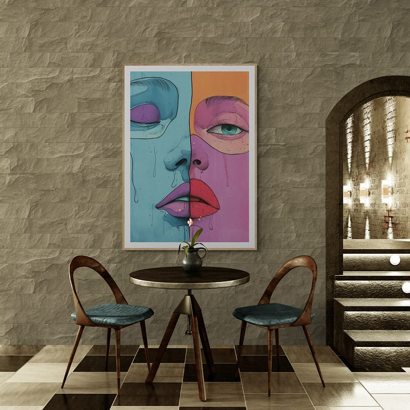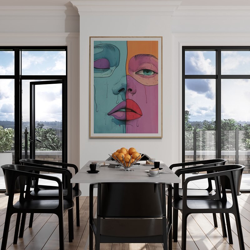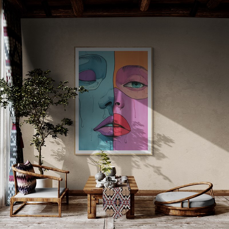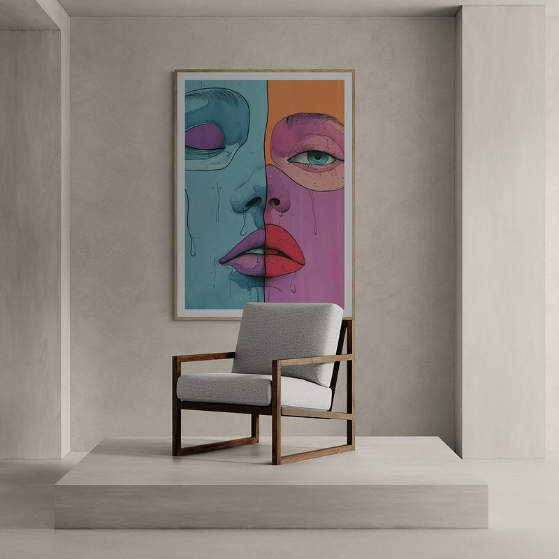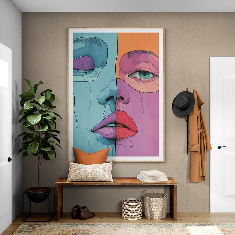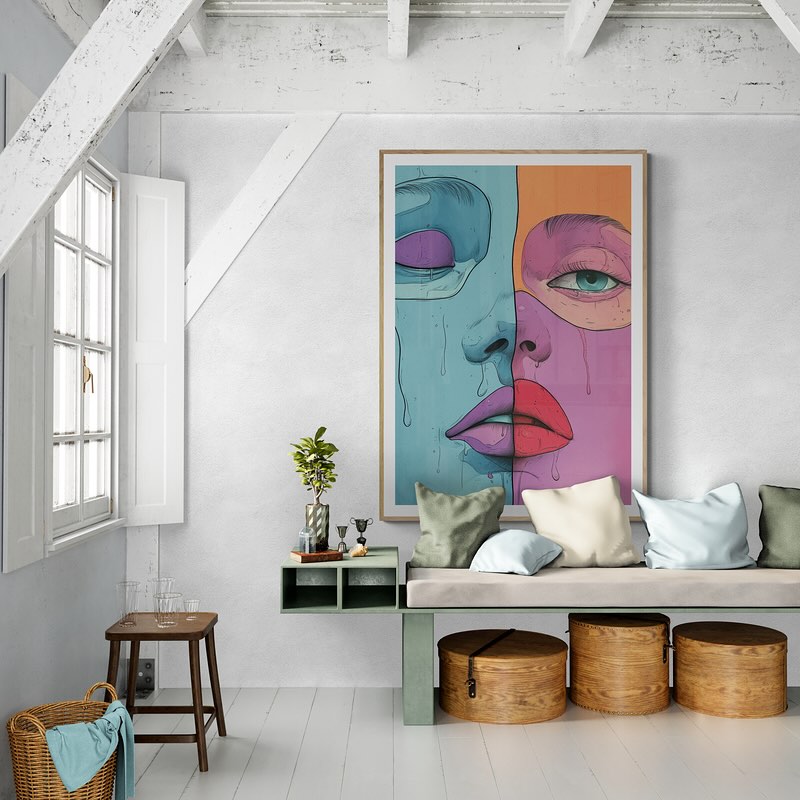 Para obras enmarcadas, sugerimos quitar con cuidado el embalaje protector y colgarla con la ayuda de dos personas, usando clavos resistentes. En el caso de obras de gran tamaño, si es posible, utiliza tornillos y tacos de pared.