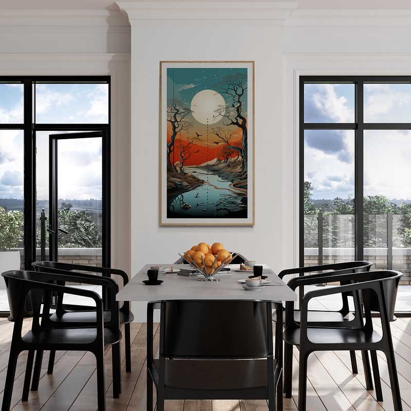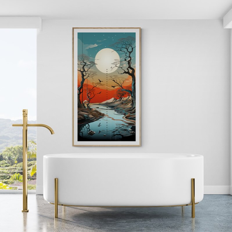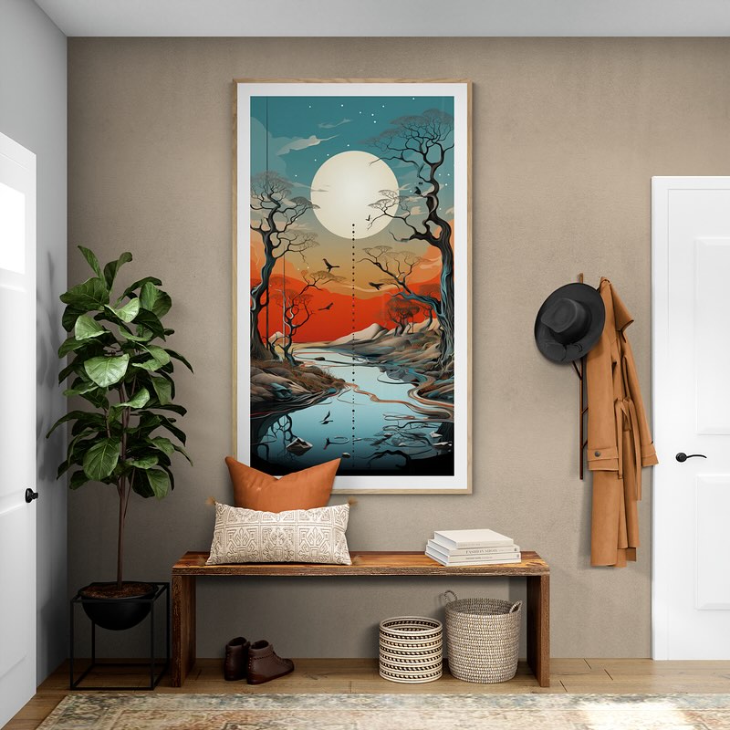 Para obras enmarcadas, sugerimos quitar con cuidado el embalaje protector y colgarla con la ayuda de dos personas, usando clavos resistentes. En el caso de obras de gran tamaño, si es posible, utiliza tornillos y tacos de pared.
