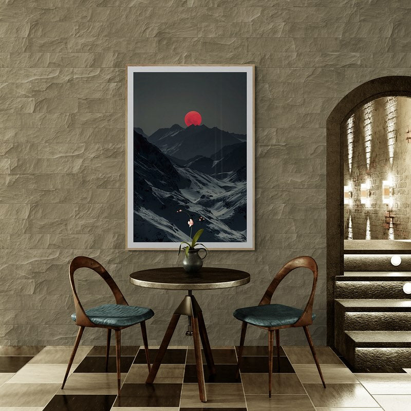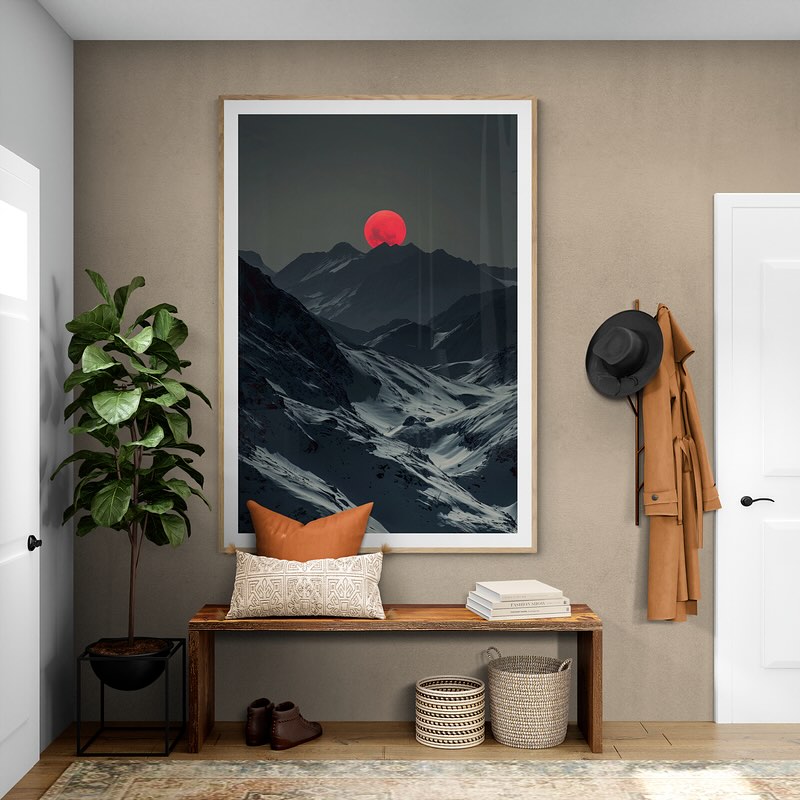 Para obras enmarcadas, sugerimos quitar con cuidado el embalaje protector y colgarla con la ayuda de dos personas, usando clavos resistentes. En el caso de obras de gran tamaño, si es posible, utiliza tornillos y tacos de pared.