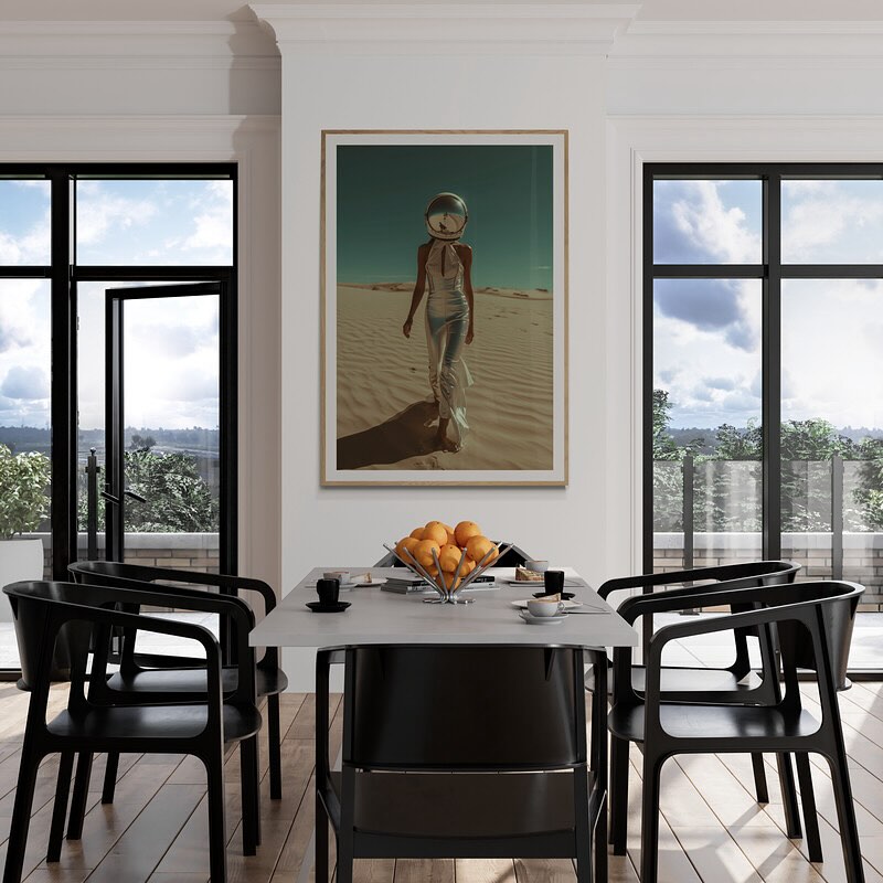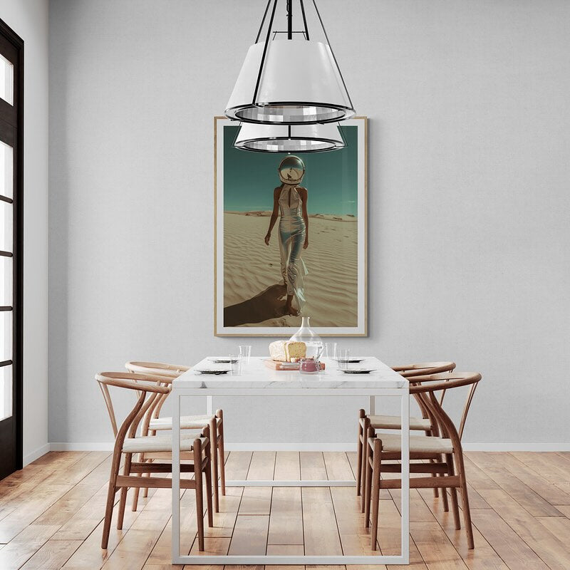 Para obras enmarcadas, sugerimos quitar con cuidado el embalaje protector y colgarla con la ayuda de dos personas, usando clavos resistentes. En el caso de obras de gran tamaño, si es posible, utiliza tornillos y tacos de pared.