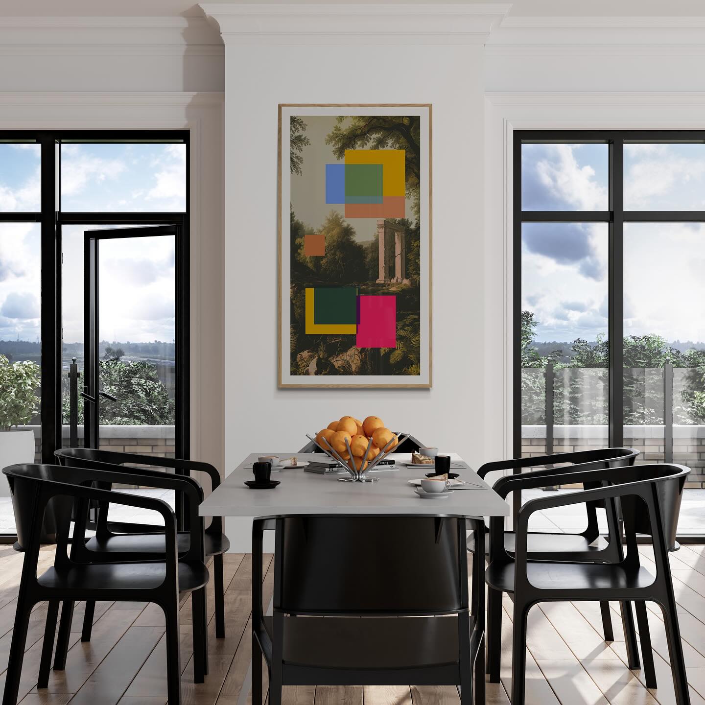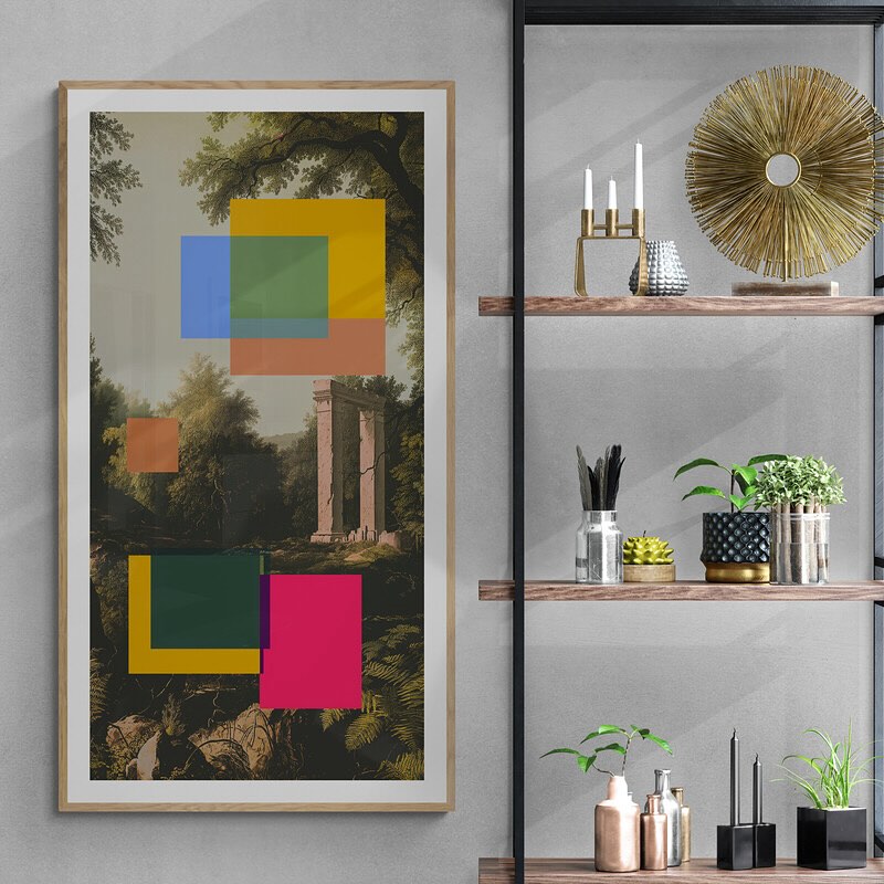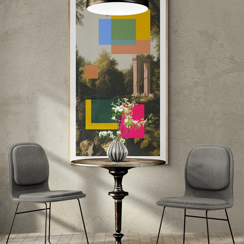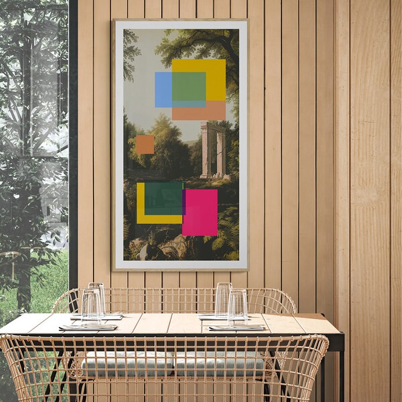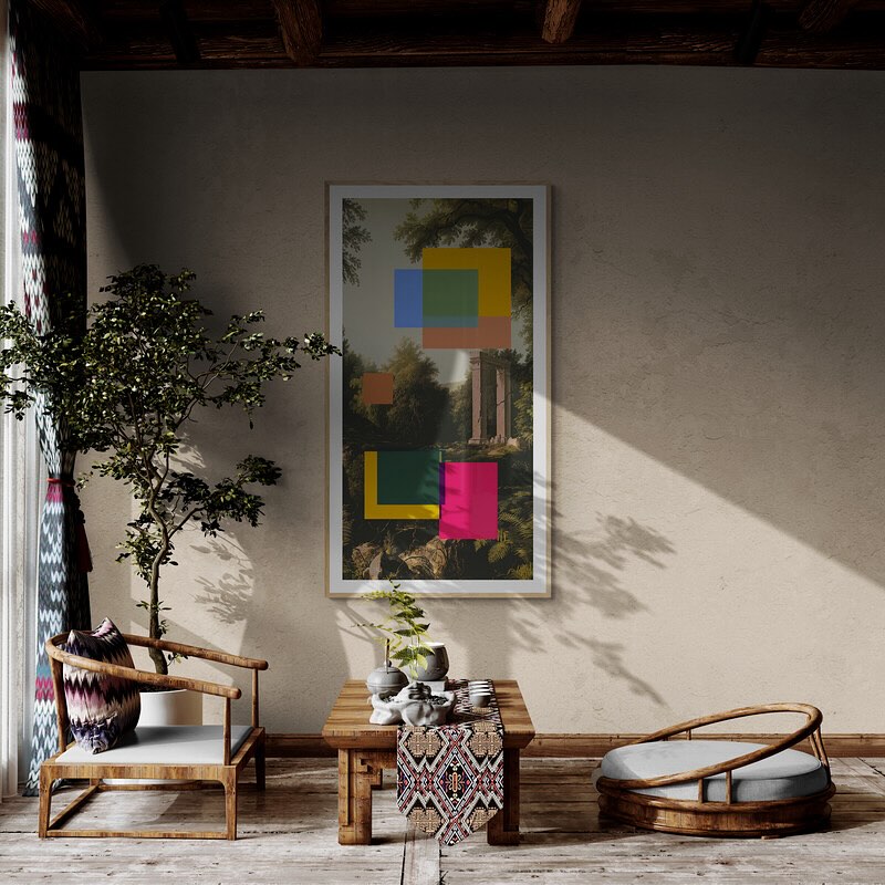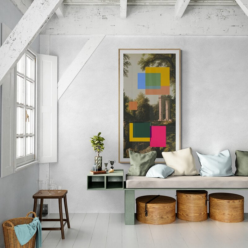 Para obras enmarcadas, sugerimos quitar con cuidado el embalaje protector y colgarla con la ayuda de dos personas, usando clavos resistentes. En el caso de obras de gran tamaño, si es posible, utiliza tornillos y tacos de pared.