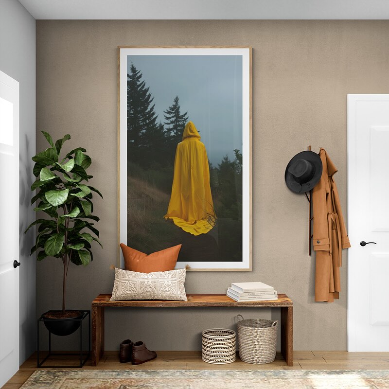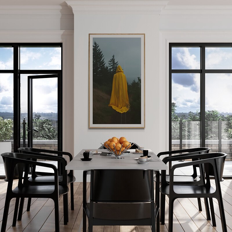 Para obras enmarcadas, sugerimos quitar con cuidado el embalaje protector y colgarla con la ayuda de dos personas, usando clavos resistentes. En el caso de obras de gran tamaño, si es posible, utiliza tornillos y tacos de pared.