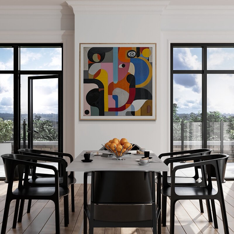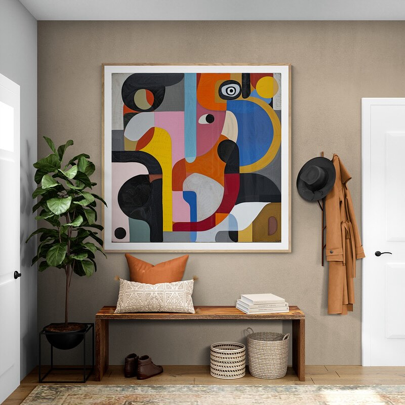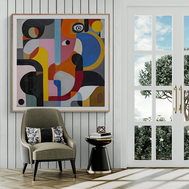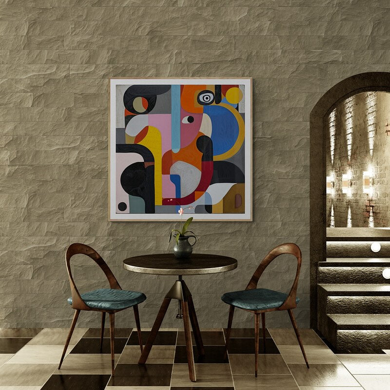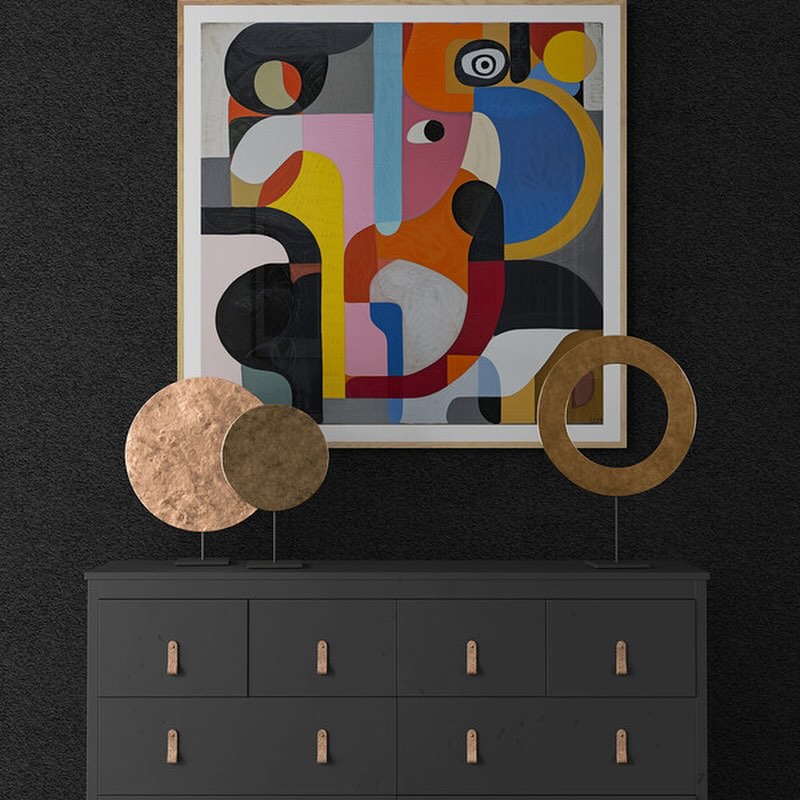 Para obras enmarcadas, sugerimos quitar con cuidado el embalaje protector y colgarla con la ayuda de dos personas, usando clavos resistentes. En el caso de obras de gran tamaño, si es posible, utiliza tornillos y tacos de pared.